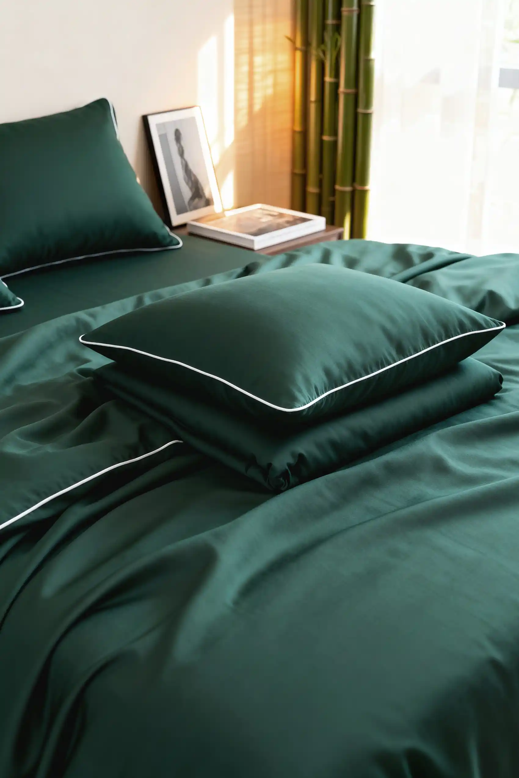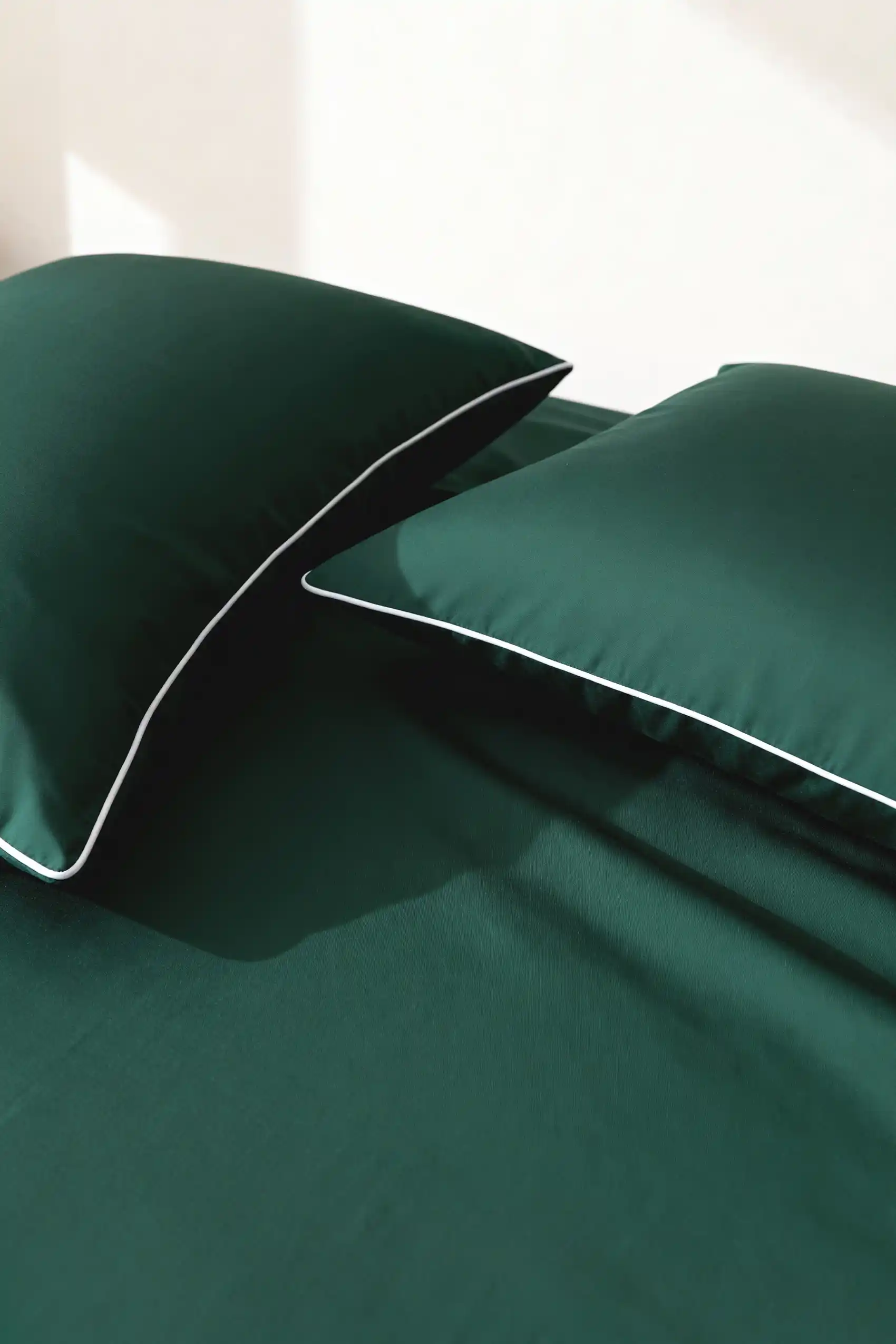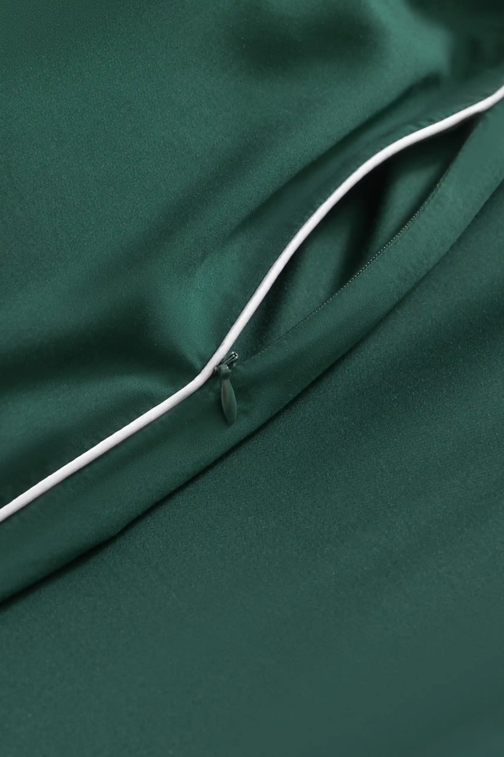 Bambusowa Poszewka z Białą Bizą 50x70 Butelkowa Zieleń