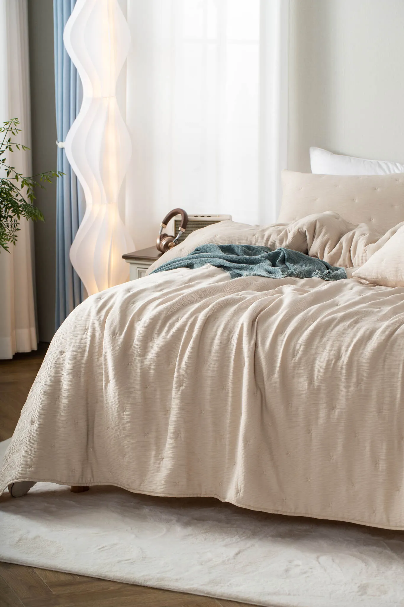 Beżowa narzuta na łóżko z muślinowym marszczeniem z mikrofibry Stella