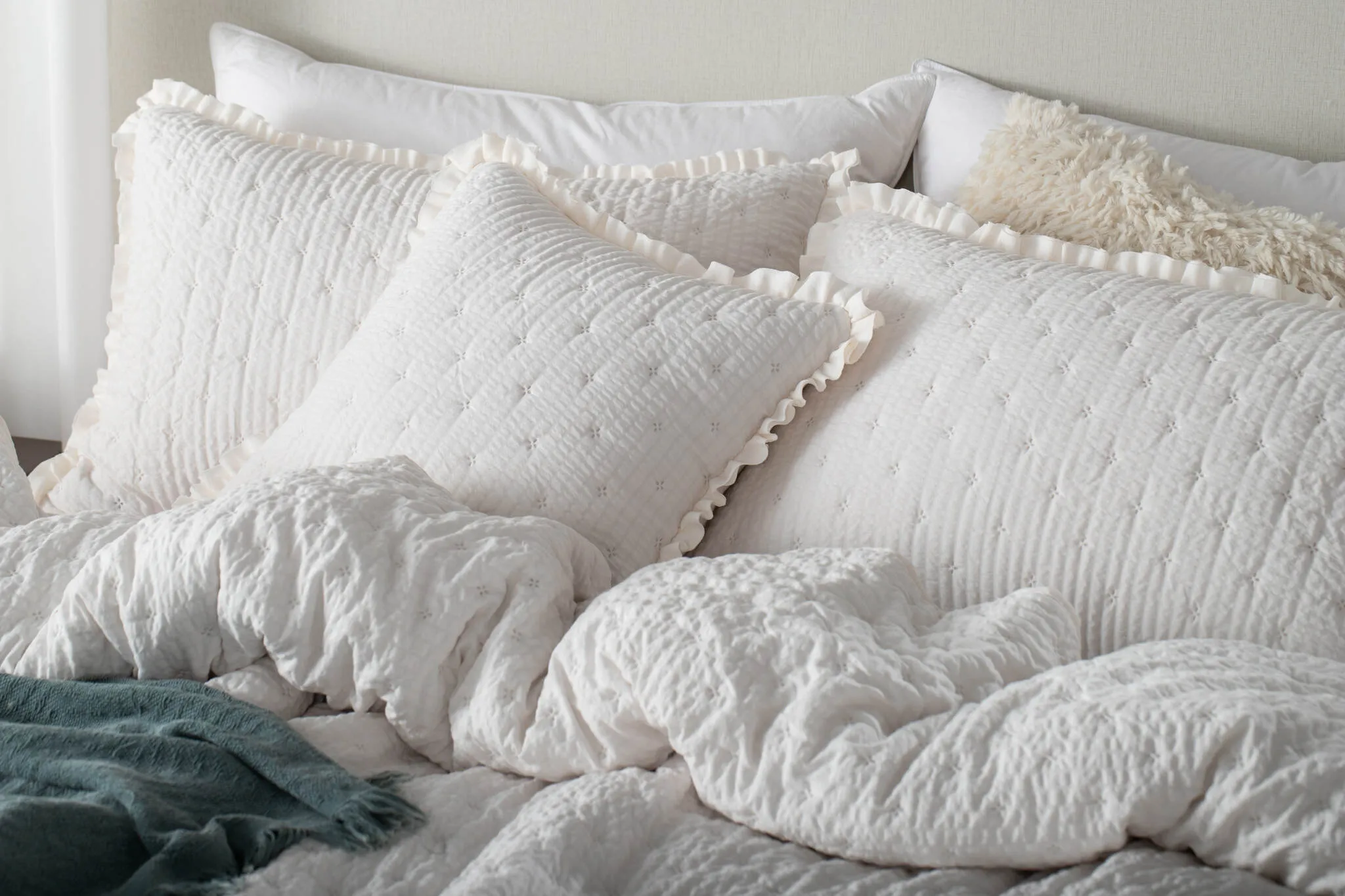 Wyobraź sobie sypialnię skąpaną w świetle poranka, w której łóżko przykryte jest śnieżnobiałą narzutą Amour. Jej lekka i miękka struktura zaprasza, by usiąść i otulić się chwilą spokoju. Delikatne pikowanie i falująca falbanka tworzą subtelny rytm, który nadaje wnętrzu romantycznego uroku. To nie tylko okrycie, ale także stylowy element dekoracyjny, który podkreśla indywidualny charakter Twojego wnętrza. Narzuta Amour sprawia, że każdy powrót do sypialni staje się małym rytuałem relaksu.