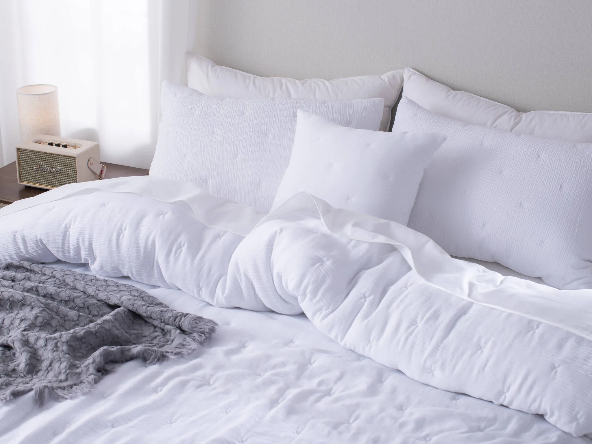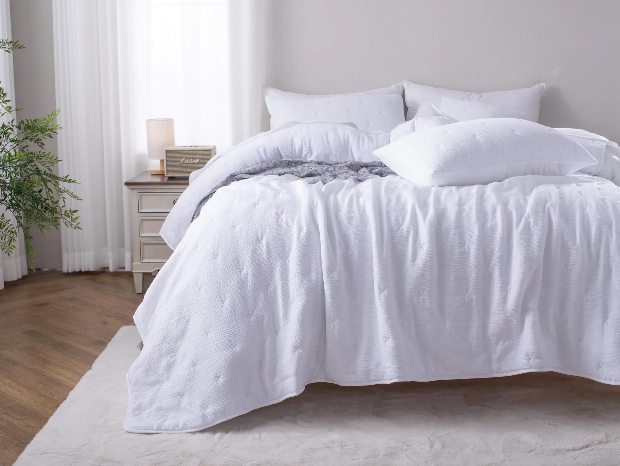 Biała narzuta na łóżko z muślinowym marszczeniem z mikrofibry Stella