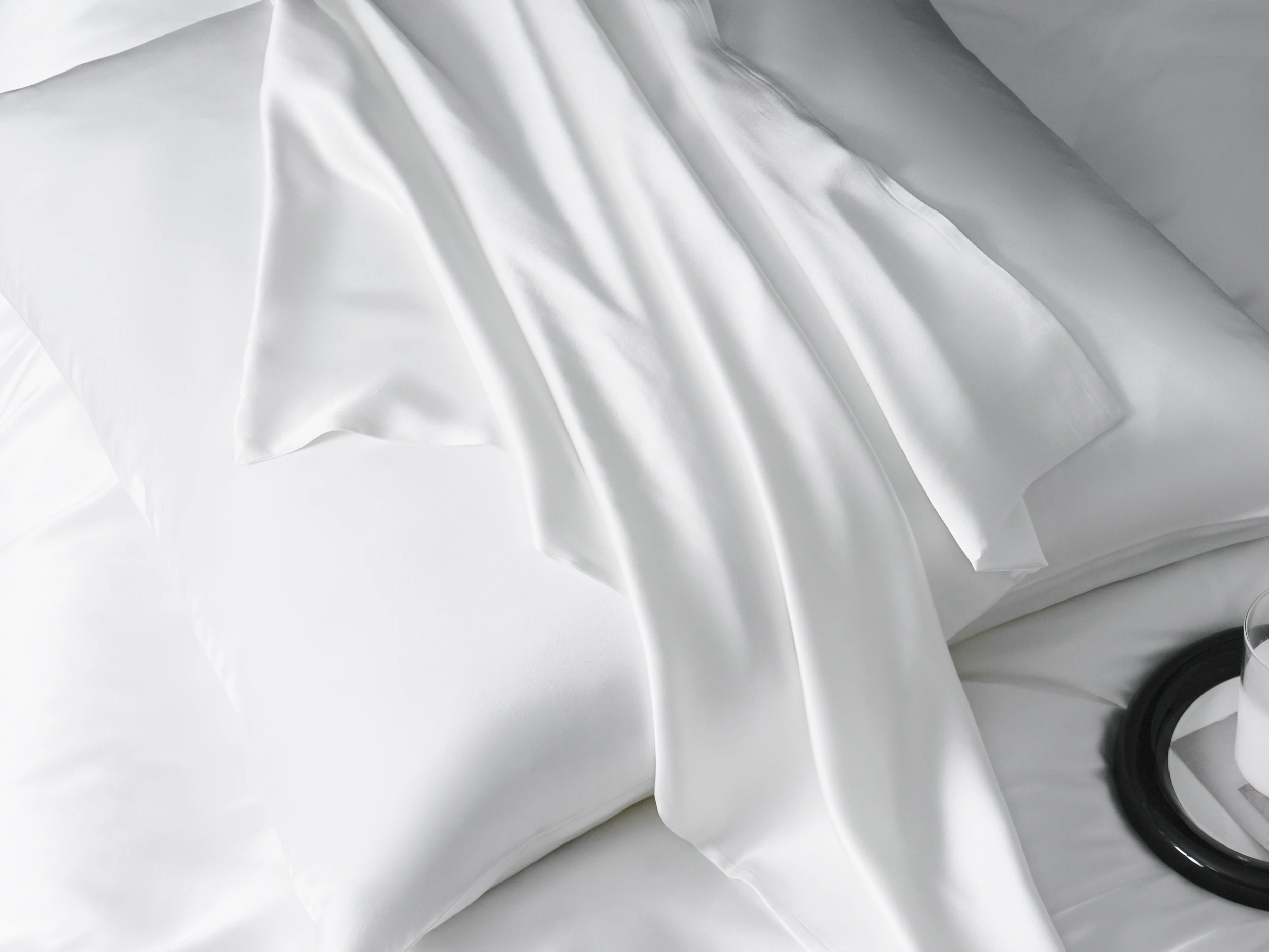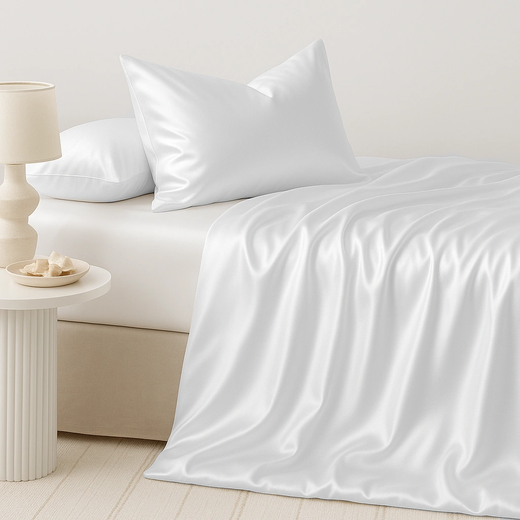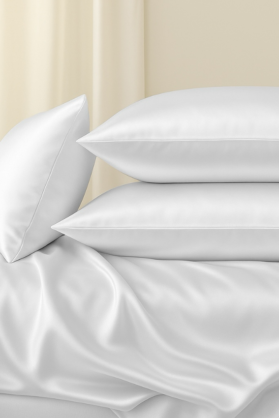 Kolekcja dostępna jest w trzech eleganckich wariantach kolorystycznych: białym, kaszmirowym oraz czarnym. Każdy z nich podkreśla luksusowy charakter jedwabiu i pozwala stworzyć harmonijną aranżację sypialni. Gładka forma sprawia, że komplet doskonale komponuje się z różnymi stylami wnętrzarskimi.