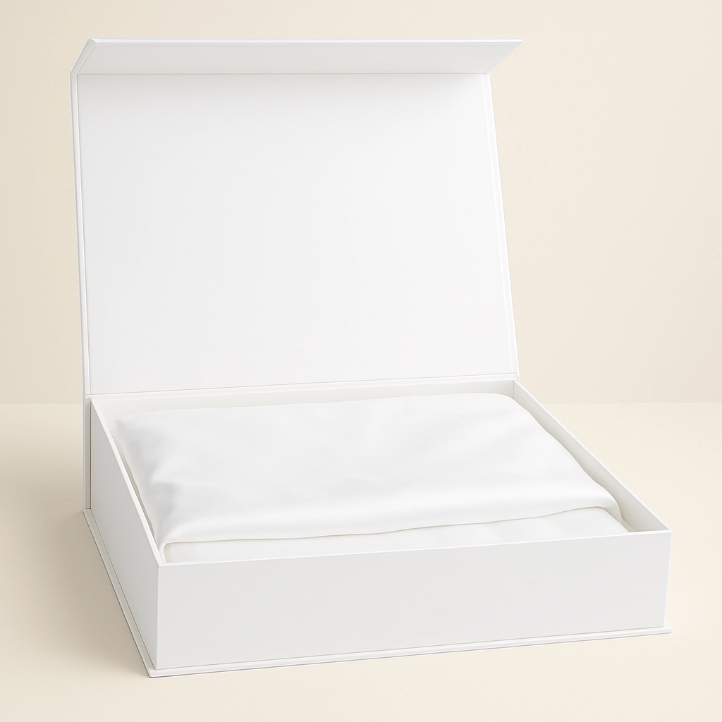 Naturalny jedwab morwowy to synonim miękkości i wyrafinowanej elegancji. Tkanina jest przyjemnie chłodna w dotyku, a jednocześnie doskonale dopasowuje się do temperatury ciała, zapewniając komfort termiczny przez cały rok. Latem delikatnie chłodzi, zimą otula subtelnym ciepłem. Jedwab jest materiałem hipoalergicznym, który naturalnie ogranicza rozwój roztoczy i bakterii. Gładka powierzchnia zmniejsza tarcie, wspierając kondycję skóry i włosów. Zapięcie na zamek błyskawiczny w kolorze tkaniny zapewnia estetyczne i wygodne użytkowanie. Całość zapakowana jest w eleganckie pudełko, dzięki czemu komplet idealnie sprawdzi się jako ekskluzywny prezent.