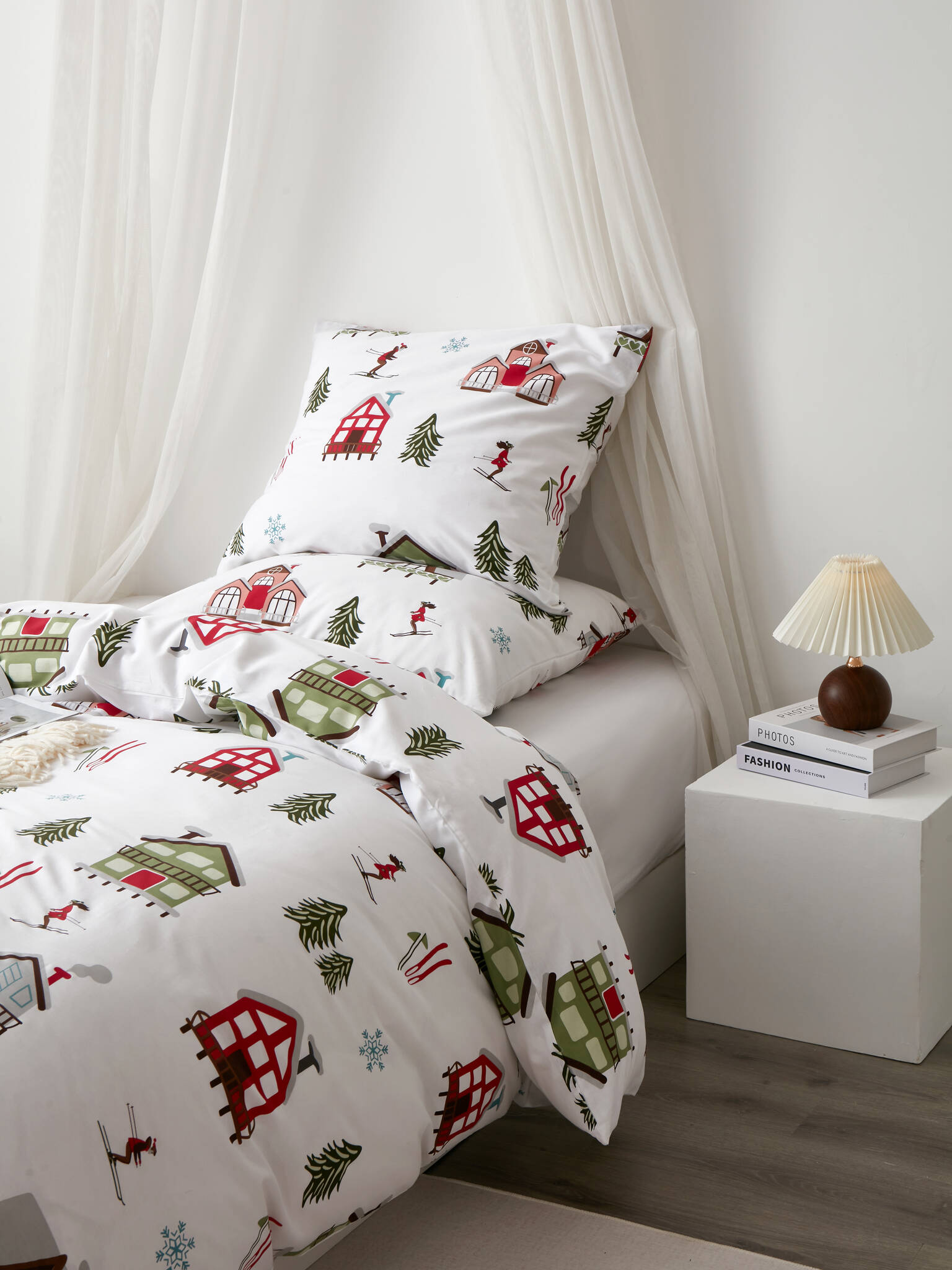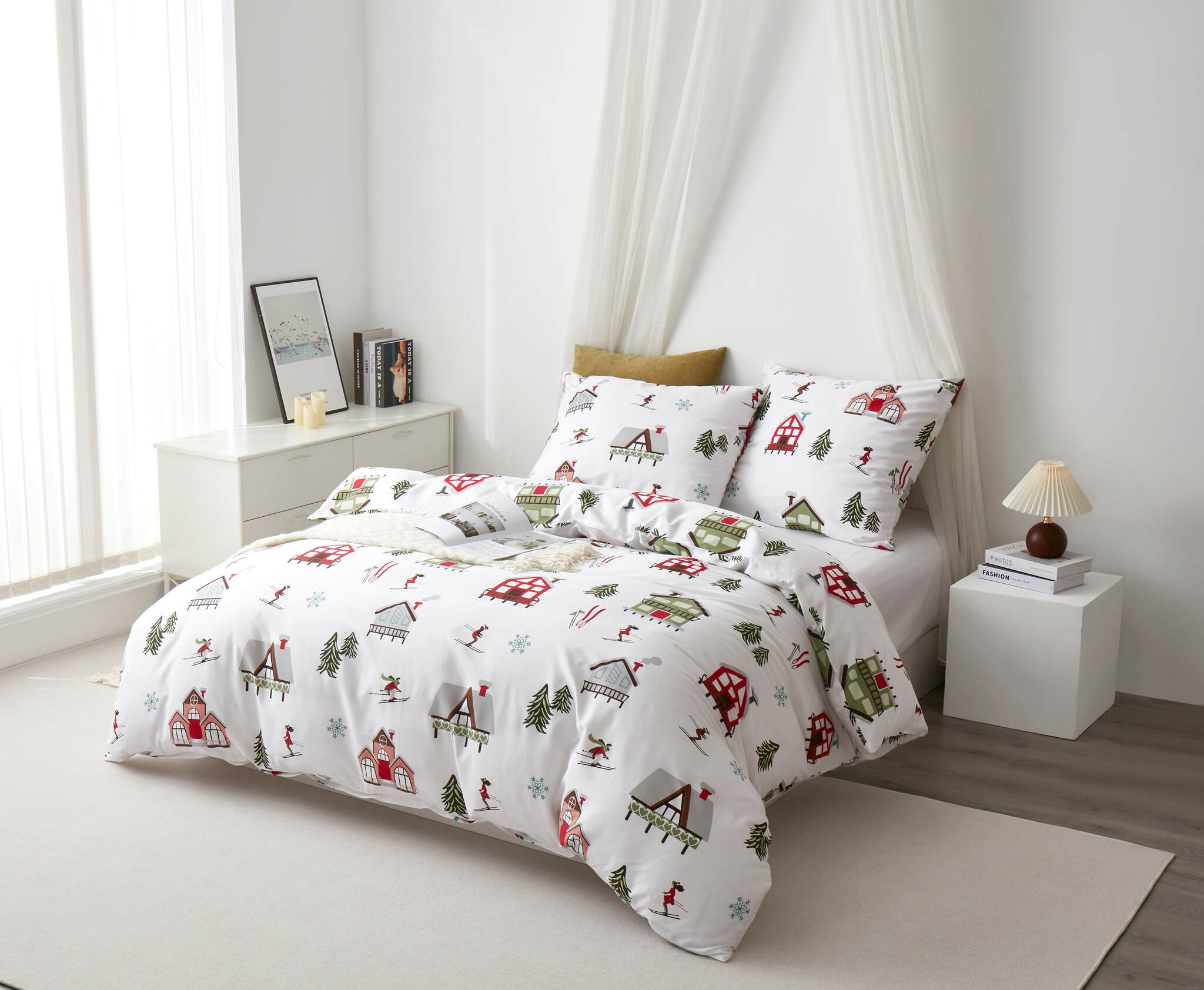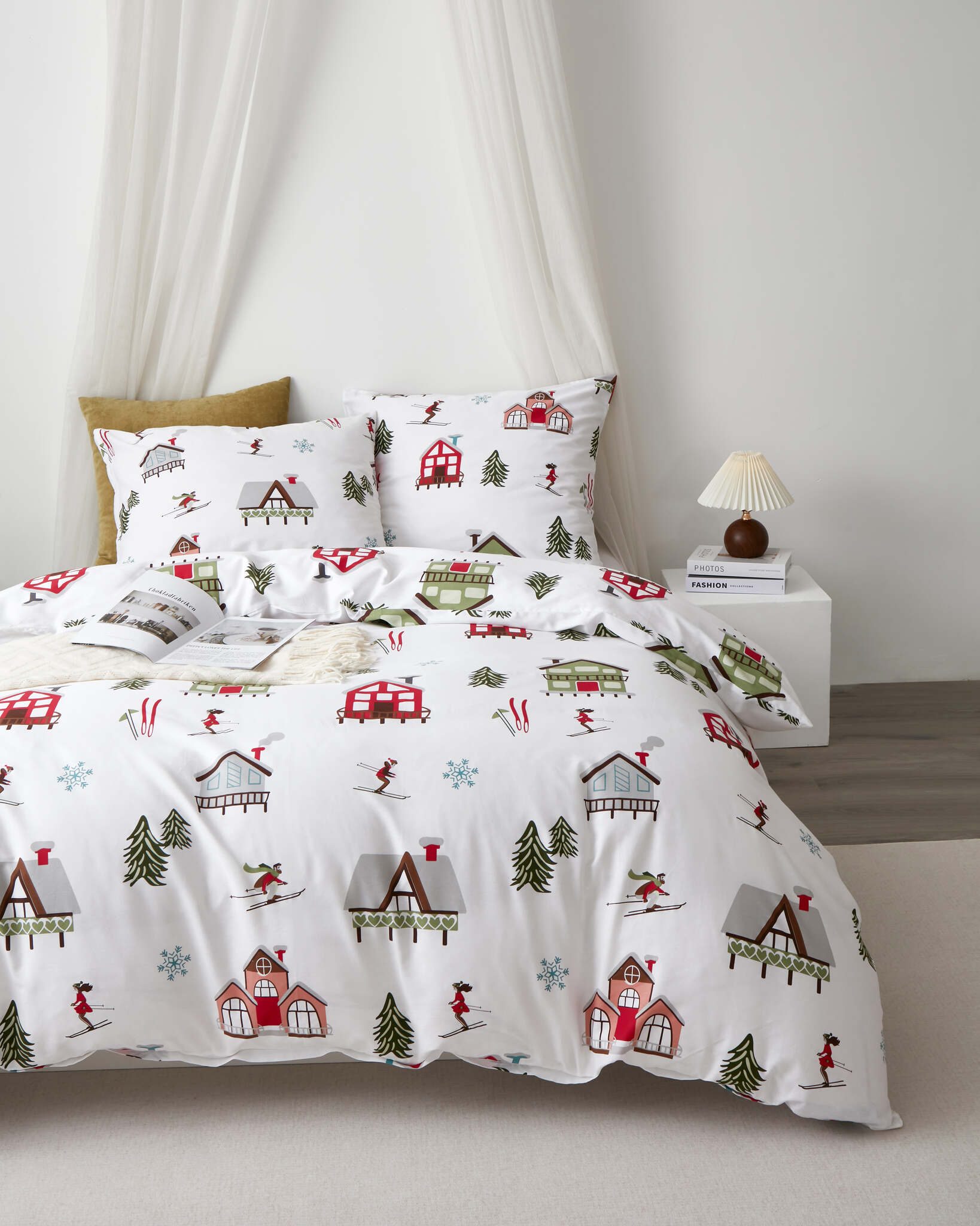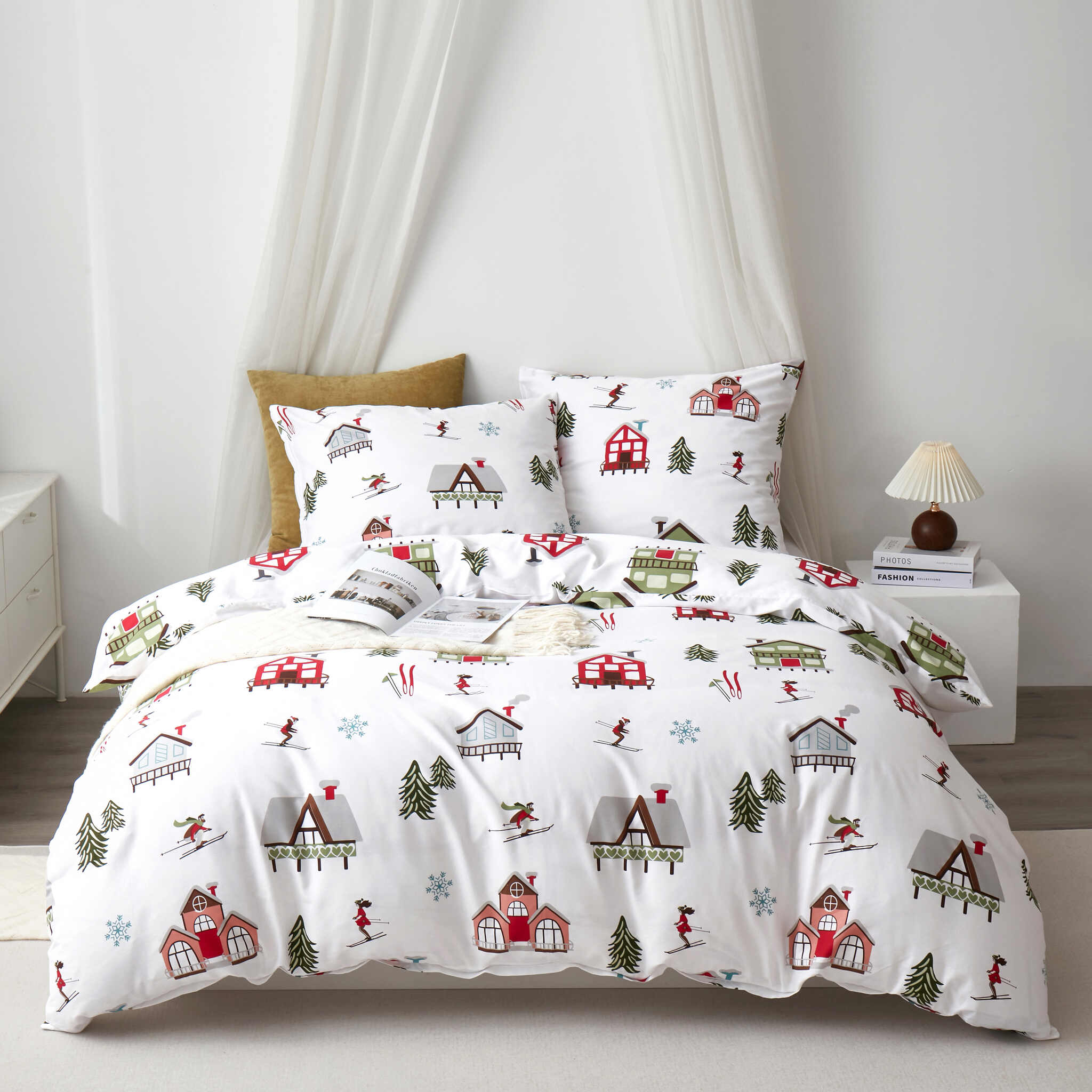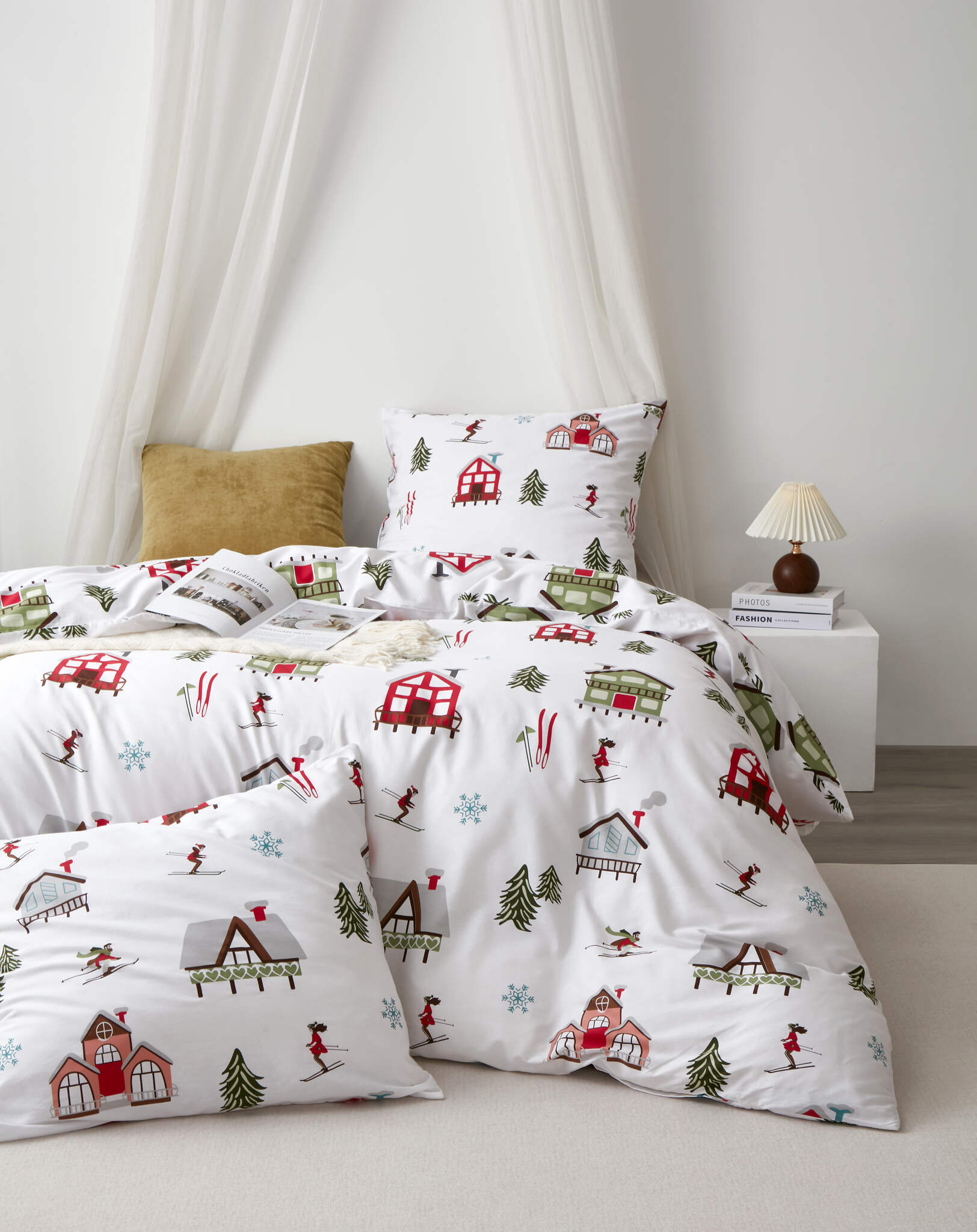Świąteczna pościel z satyny bawełnianej 140x200 cm + 1x 70x80 cm – Skiing - Świąteczna przytulność w Twoim wnętrzu
