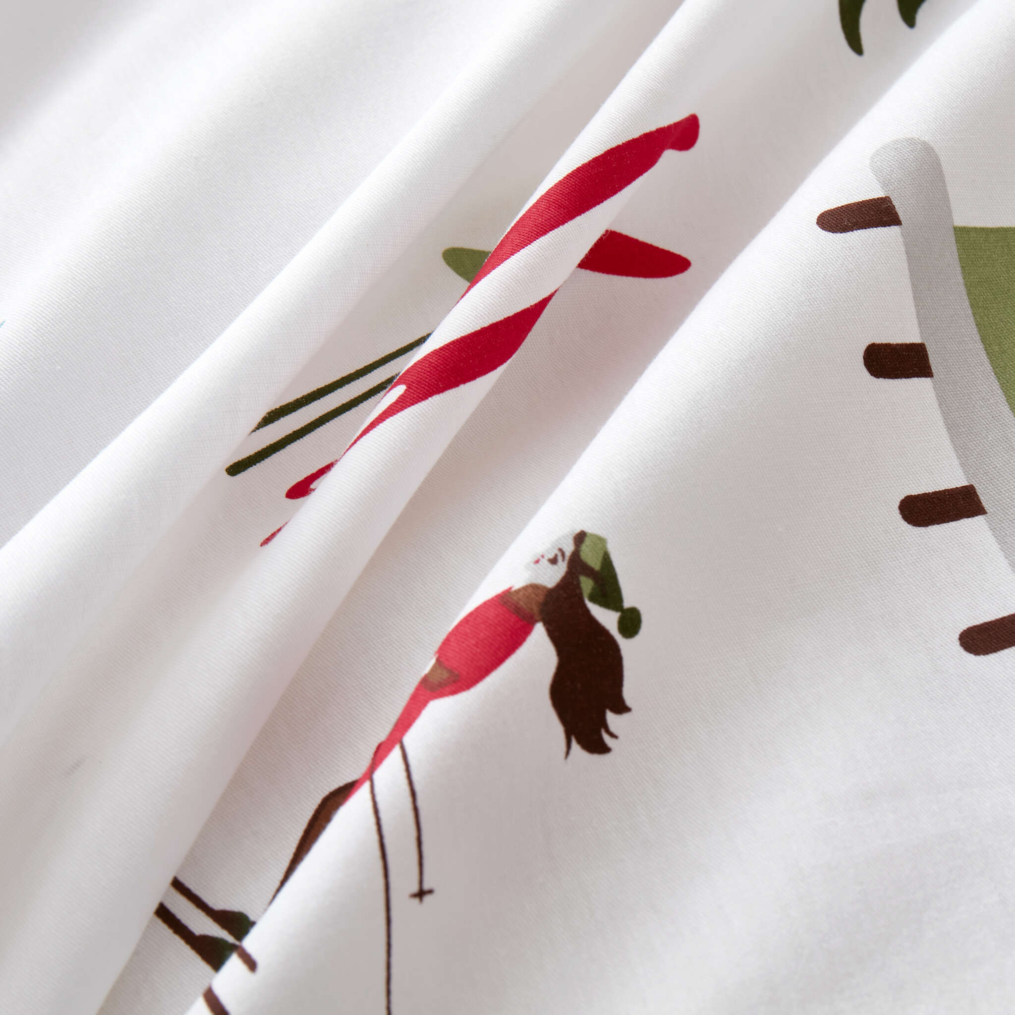 Biała Pościel Świąteczna Satyna Bawełniana z Nadrukiem 140x200 Skiing