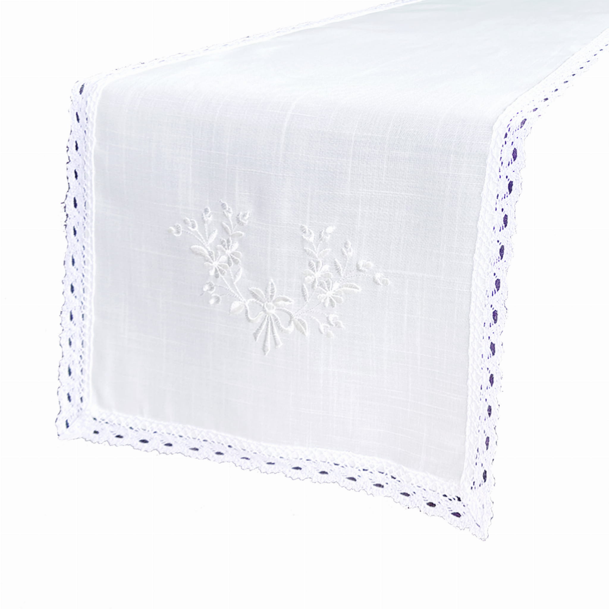 BIAŁY OBRUS Z KWIATOWYM HAFTEM 90x160