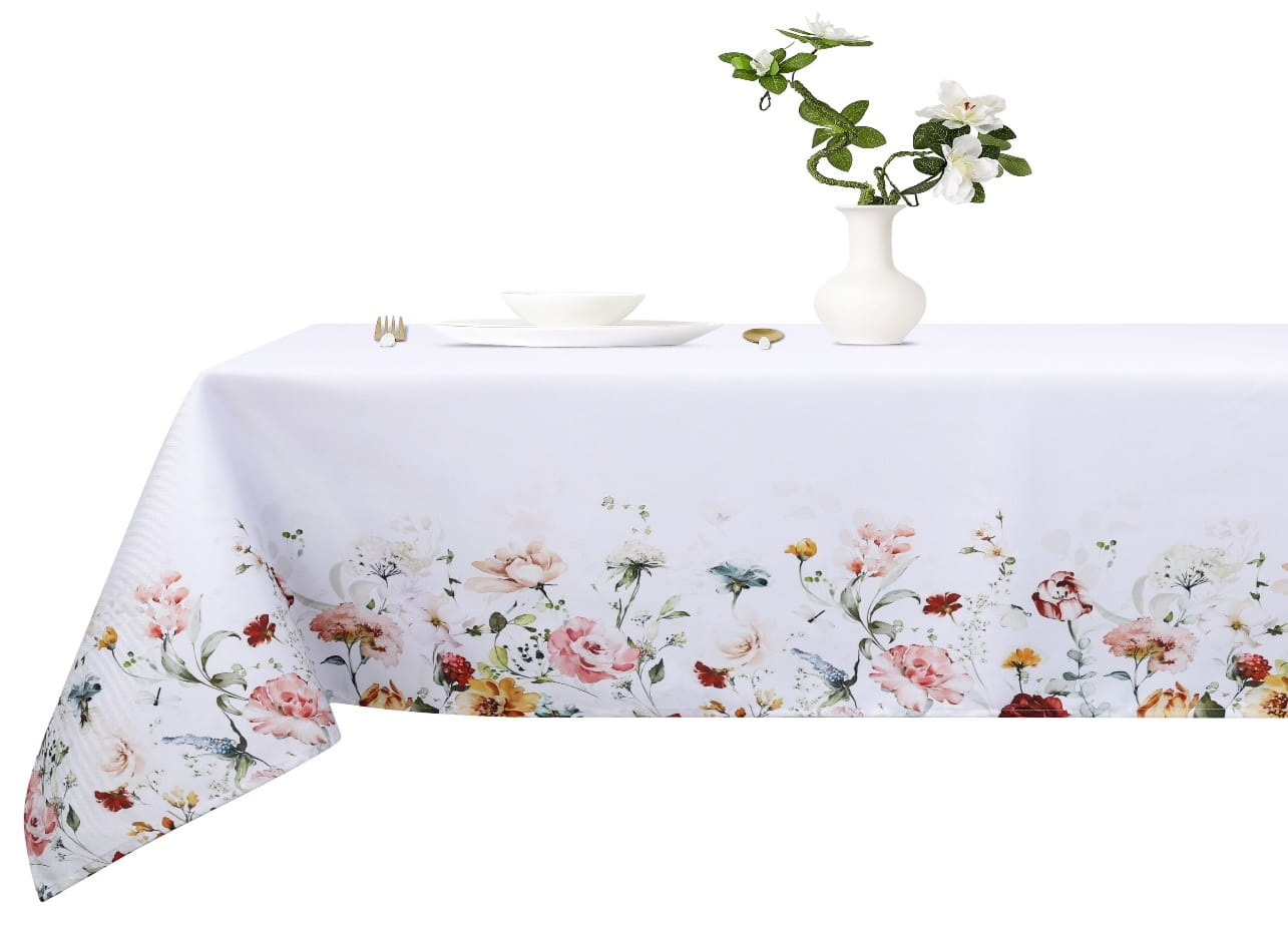 Obrus doskonale sprawdzi się zarówno na co dzień, jak i podczas wyjątkowych okazji. Uniwersalna biel doskonale komponuje się zarówno z tradycyjnymi, jak i nowoczesnymi aranżacjami, a kwiatowy nadruk nadaje mu wyjątkowy, wiosenny charakter. Można go wykorzystać do aranżacji stołu w salonie, kuchni, na tarasie czy balkonie. Dzięki wysokiej jakości materiałowi jest odporny na blaknięcie i wielokrotne pranie.