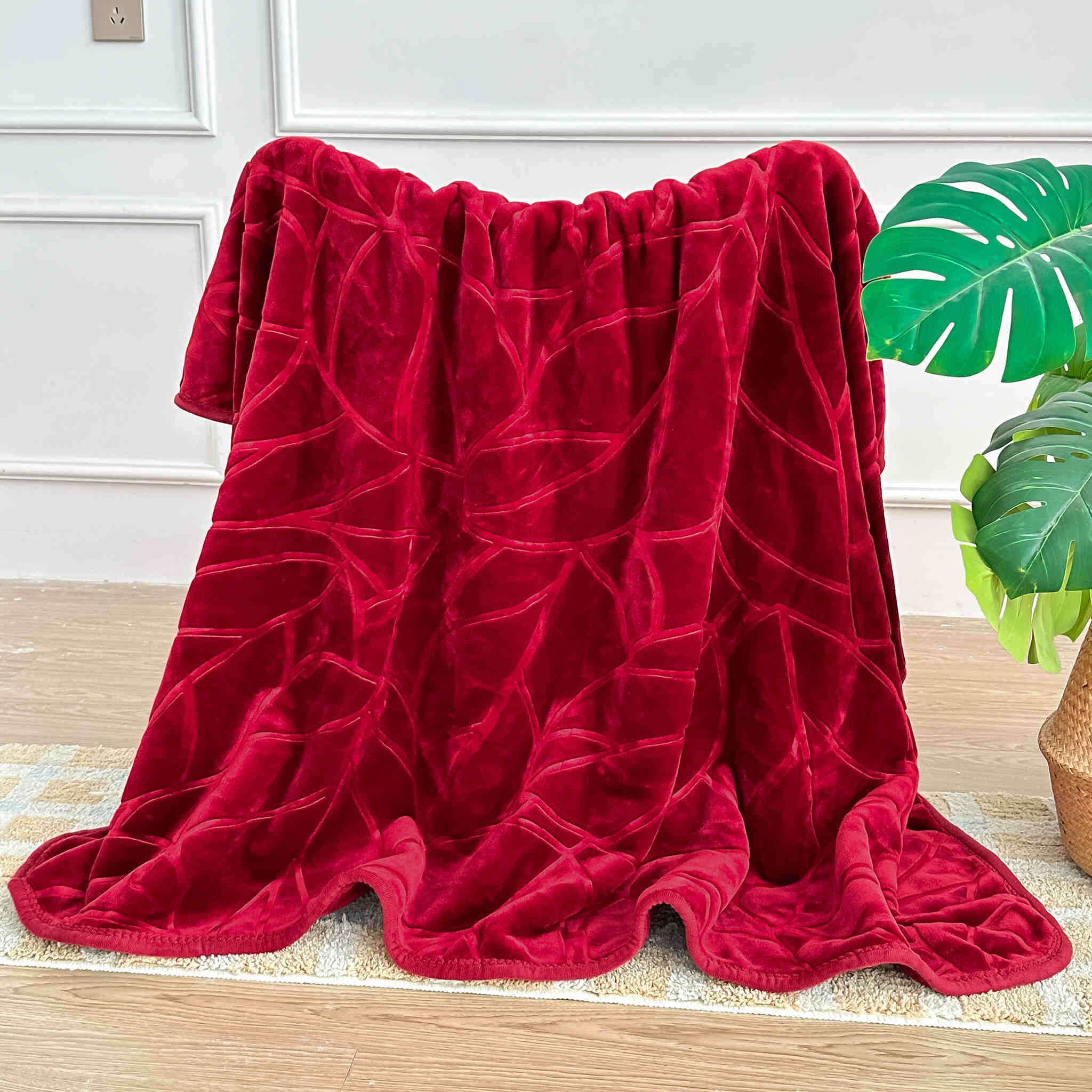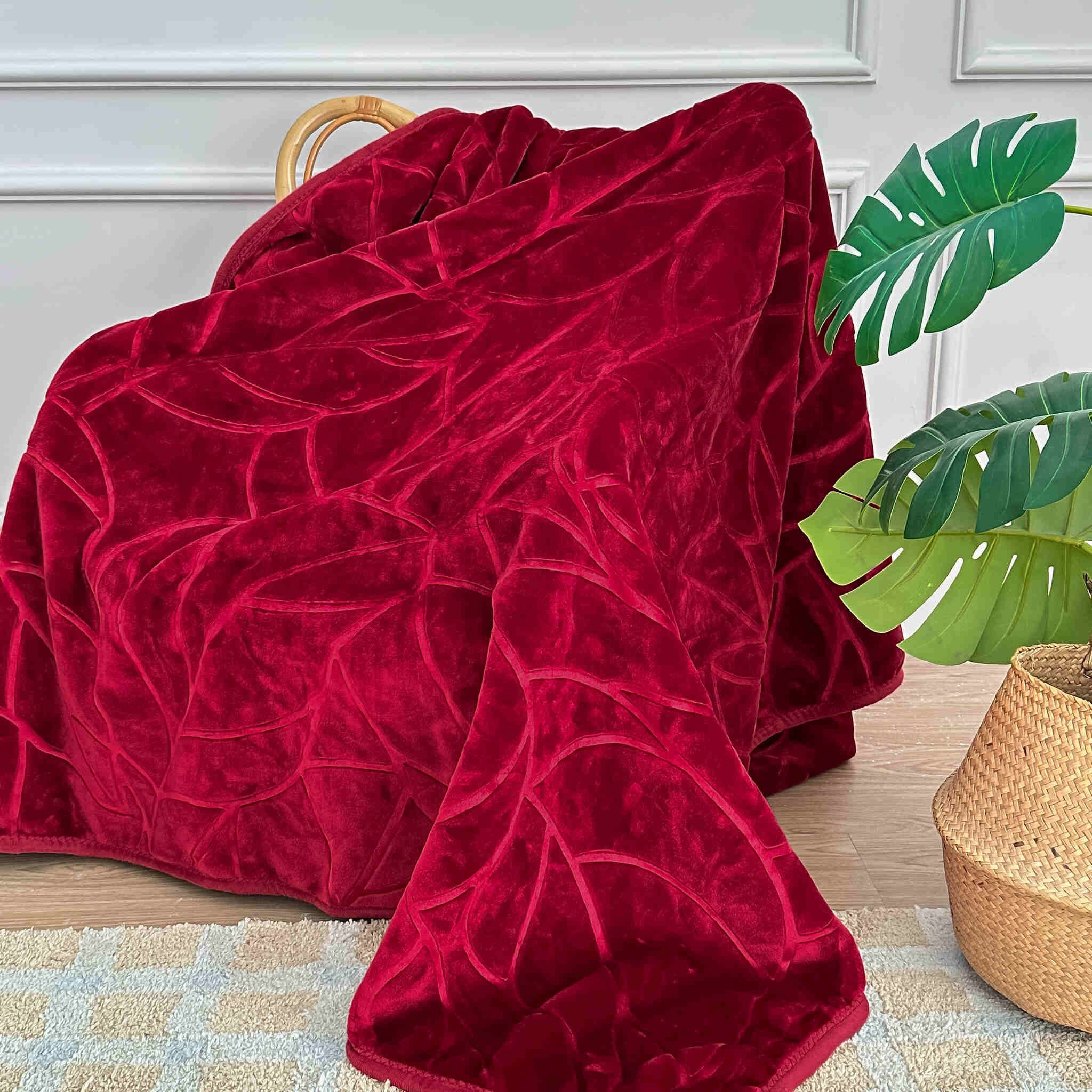 Ten elegancki, bordowy koc z syntetycznej przędzy akrylowej to połączenie praktyczności, komfortu i stylowego designu, który doskonale odnajdzie się w każdej przestrzeni – od klasycznego salonu, po nowoczesną sypialnię. W prezentowanej wersji o wymiarze 80x160 cm, będzie idealnym wyborem jako narzuta na fotel, zapewniając przy tym nie tylko ochronę tapicerki, ale również przyjemne ciepło w chłodniejsze dni. Wyróżnia się mięsistą gramaturą 540 g/m², co sprawia, że jest wyjątkowo ciepły i przyjemny w dotyku. Strona z tłoczeniem przedstawia delikatny liściasty wzór, który dodaje całości subtelnego, naturalnego uroku, natomiast druga strona pozostaje gładka, bez połysku – dla tych, którzy cenią sobie minimalizm i prostotę.