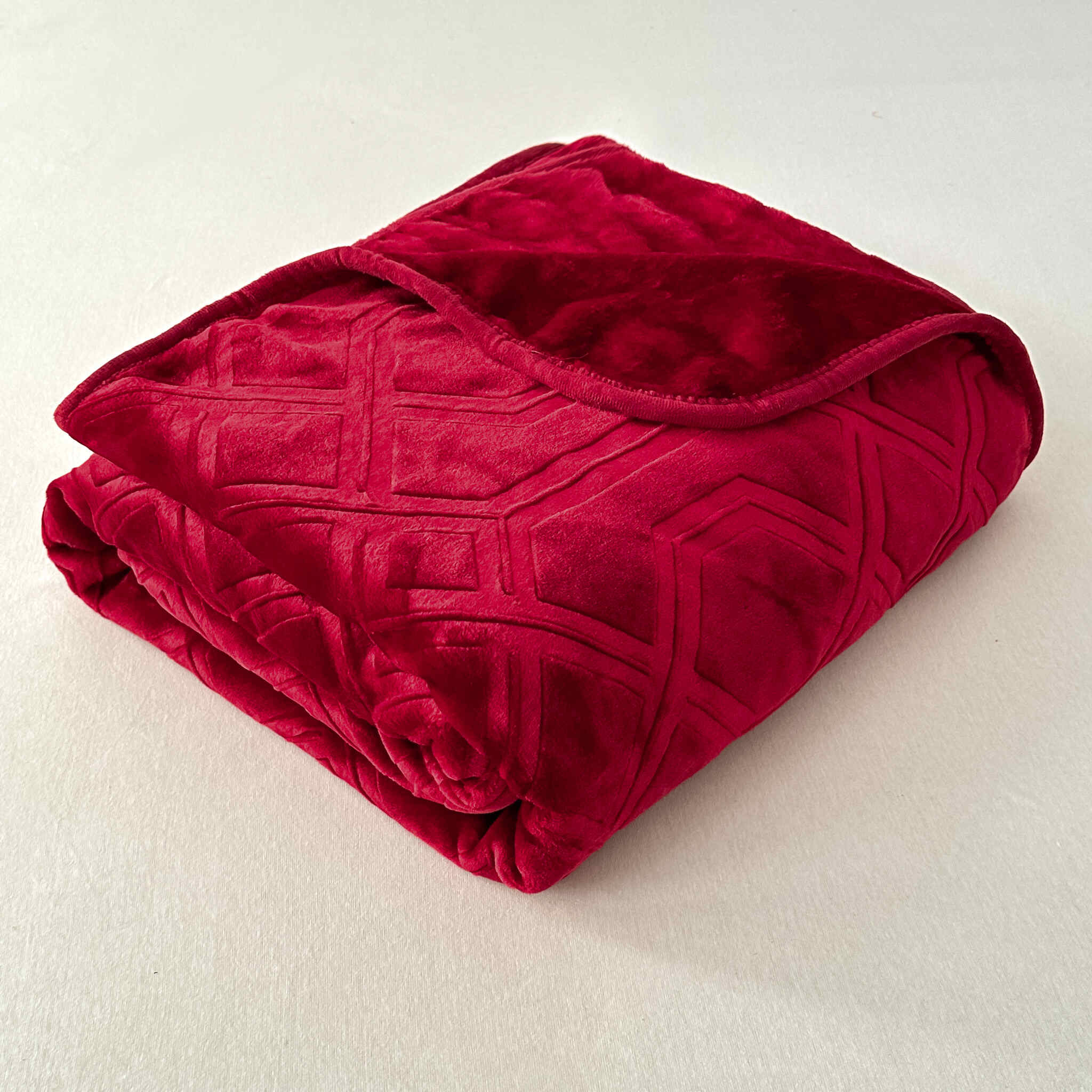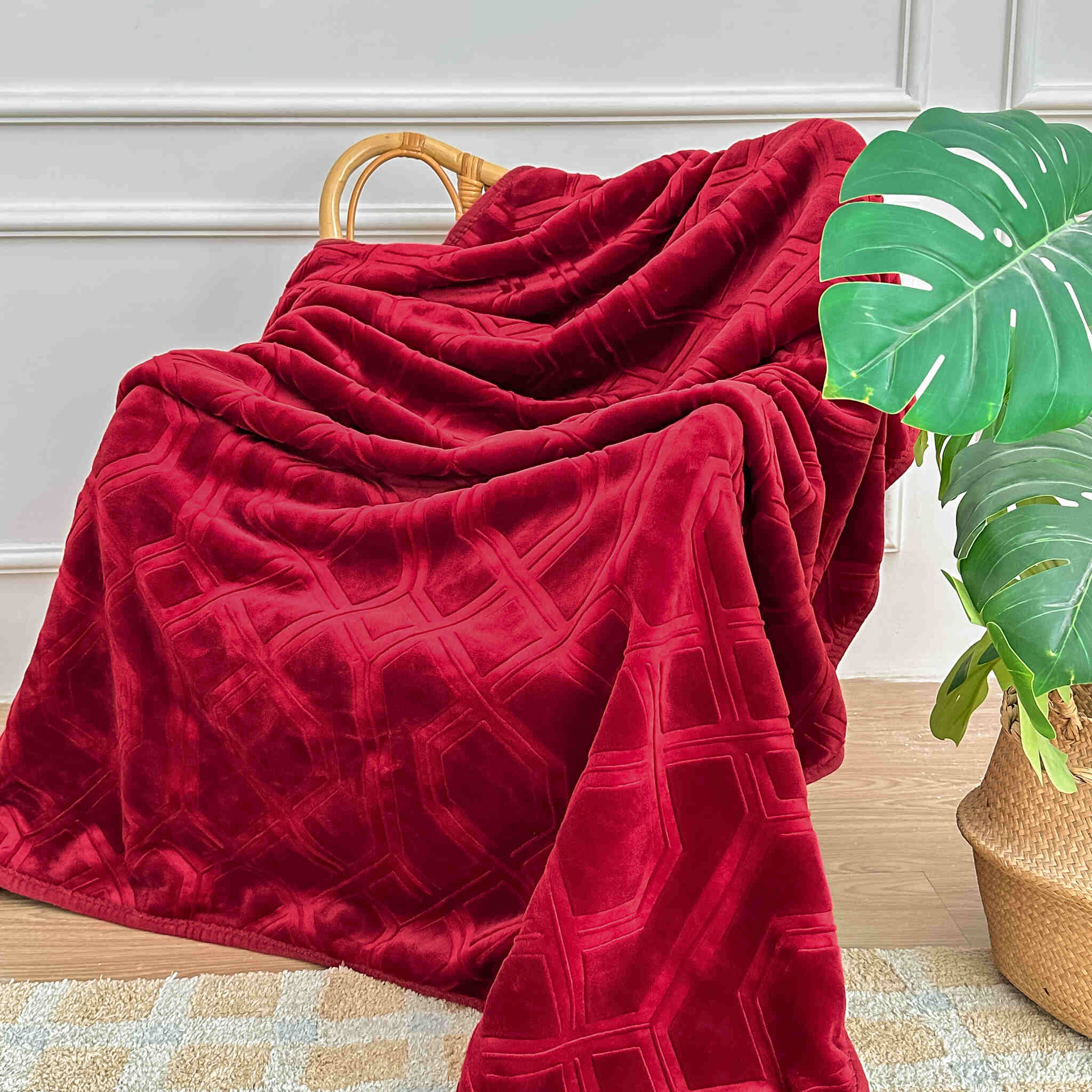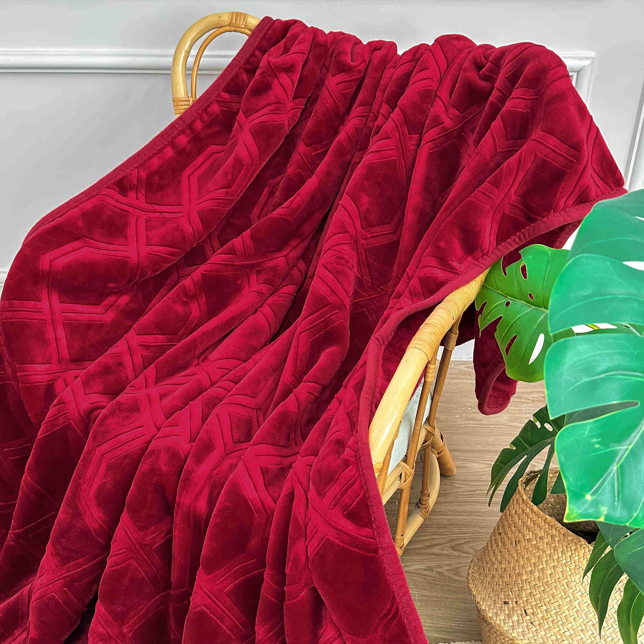 Bordowy Koc Narzuta na Fotel Vito 80x160 cm z Tłoczeniem Geometrycznym – Miękkość, która Otula w Eleganckim Stylu