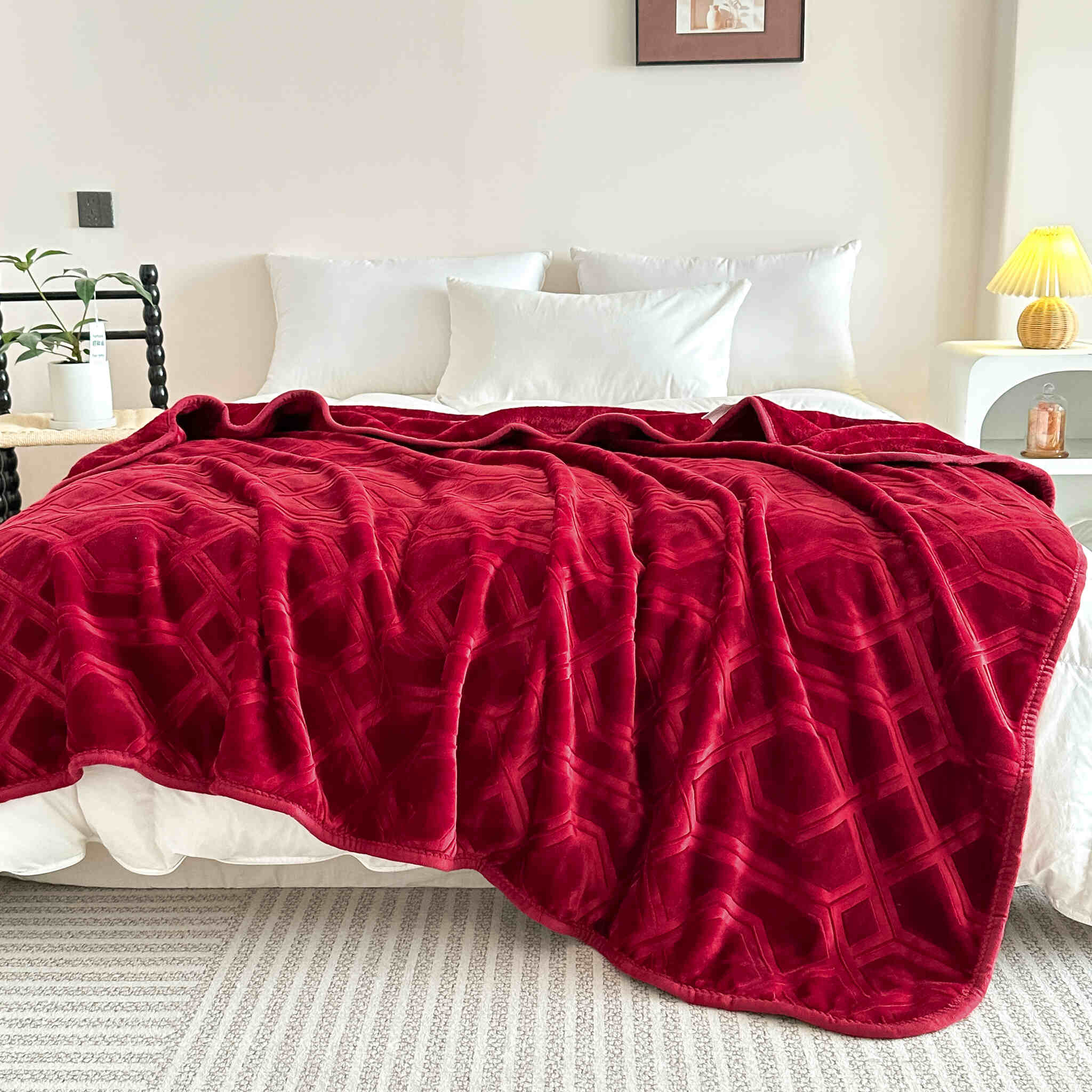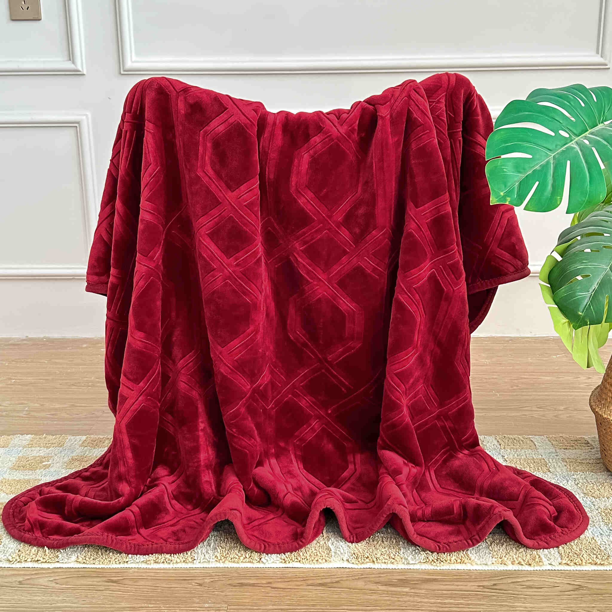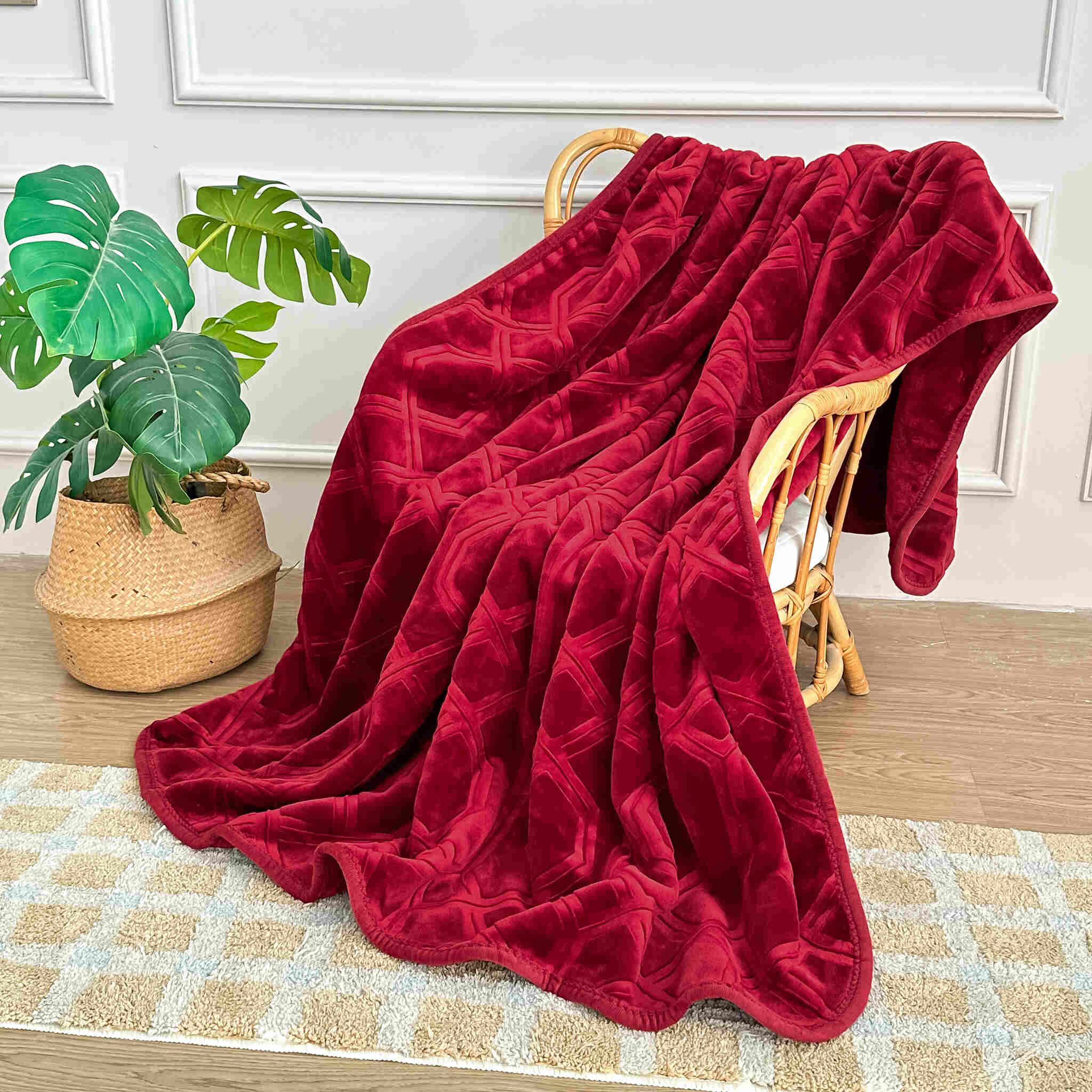 Bordowy Koc Narzuta na Fotel Vito 80x160 cm z Tłoczeniem Geometrycznym – Miękkość, która Otula w Eleganckim Stylu