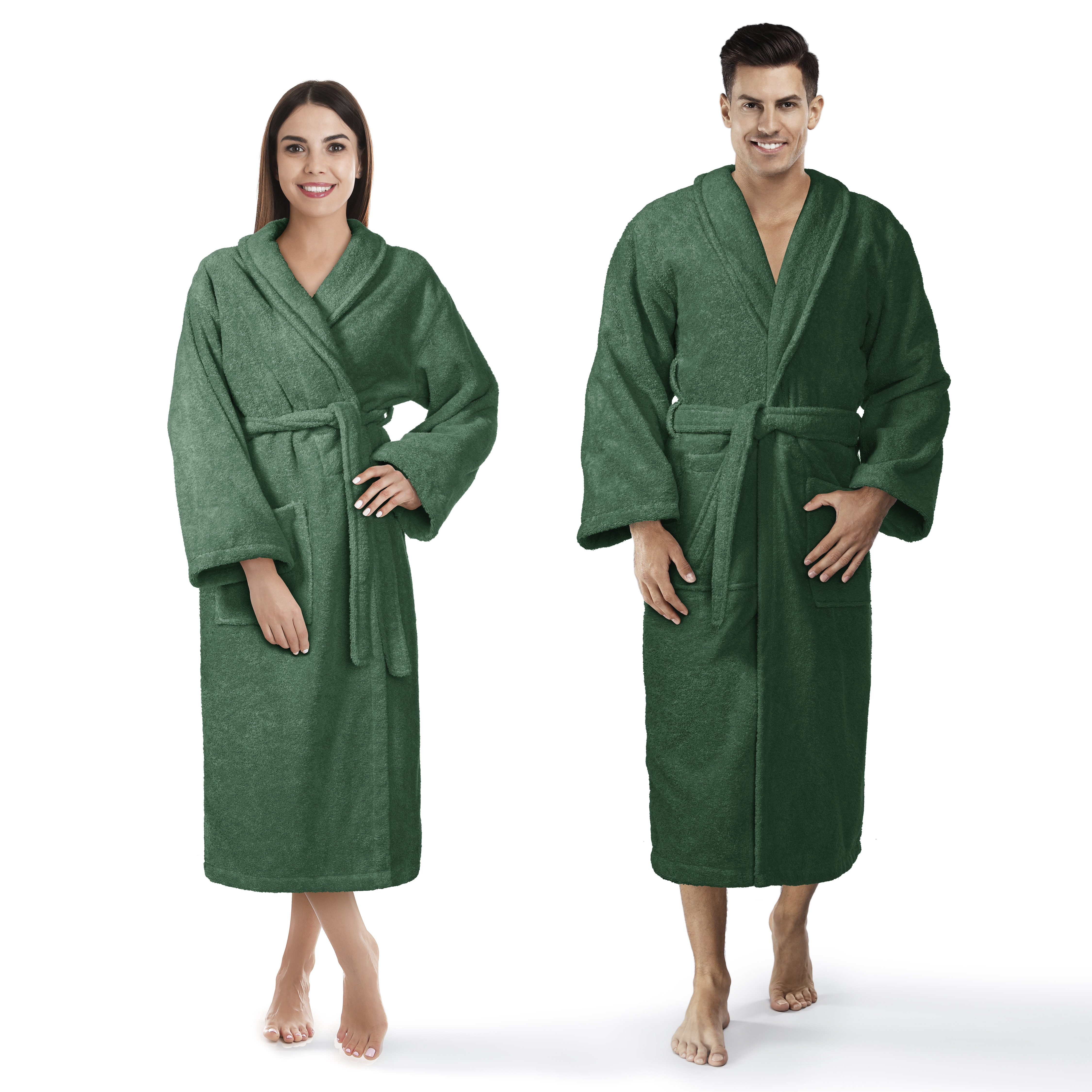 Butelkowa Zieleń szlafrok unisex z paskiem w talii z bawełny frotte Prestiż