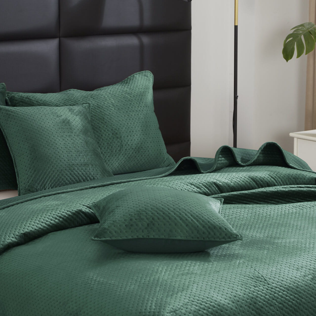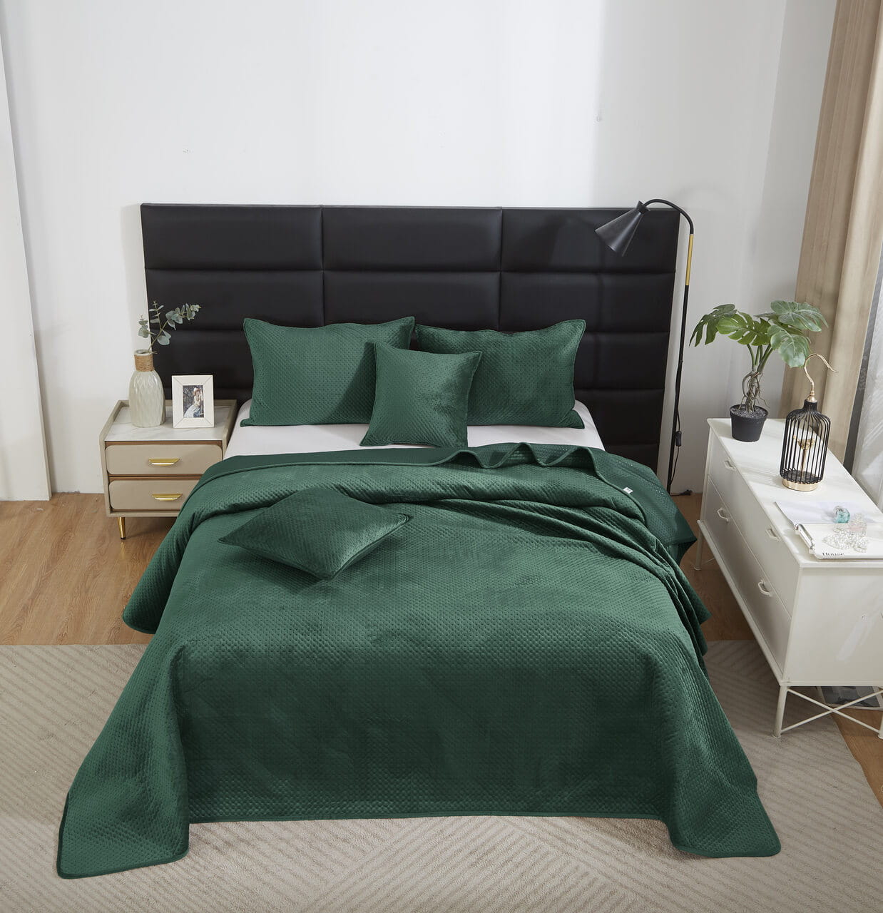Butelkowa Zieleń Pikowana Narzuta na Łóżko Welurowa 240x220 Maya
