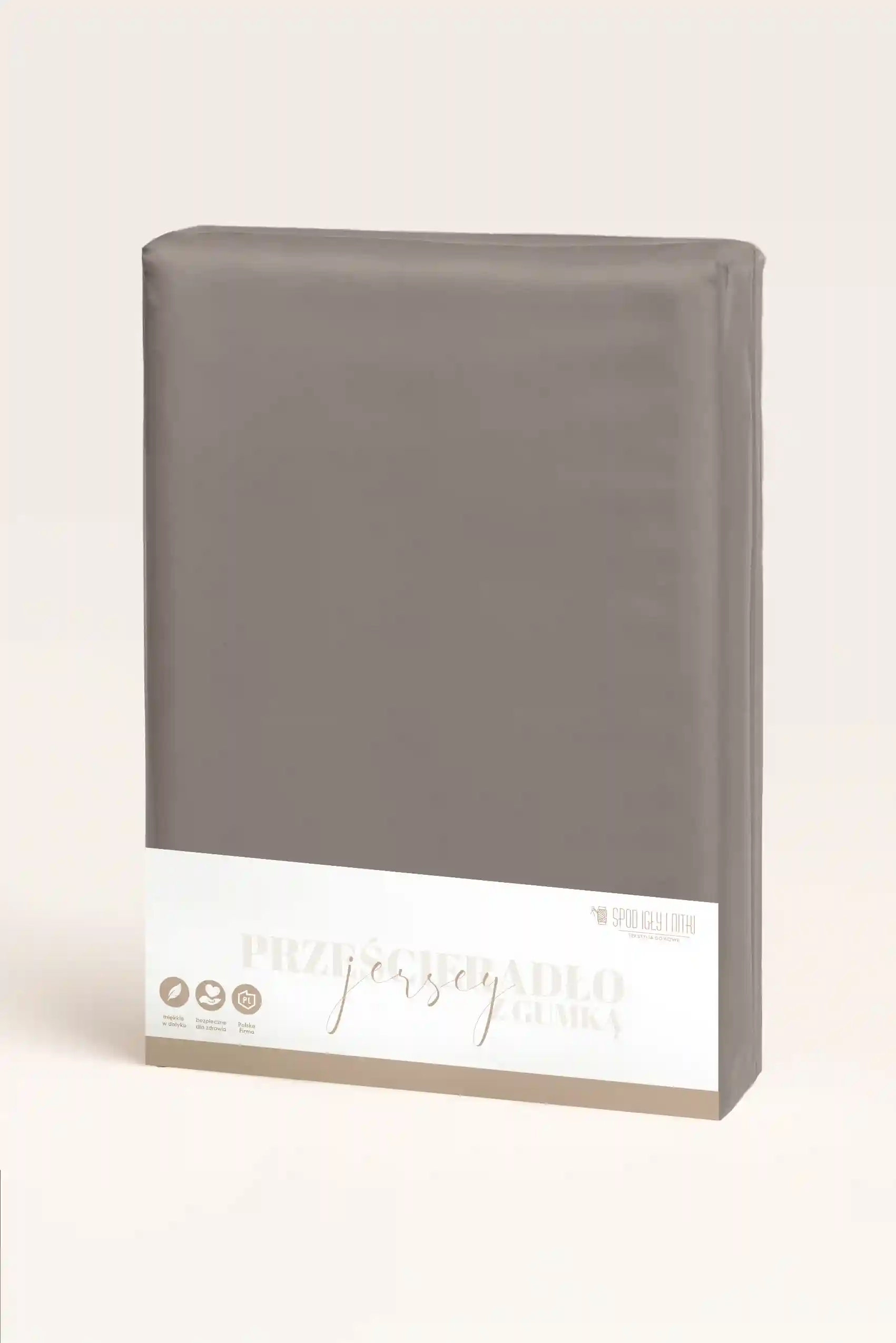 Ciemnobeżowe prześcieradło z gumką z elastycznej dzianiny jersey z 100% bawełny Spod Igły i Nitki