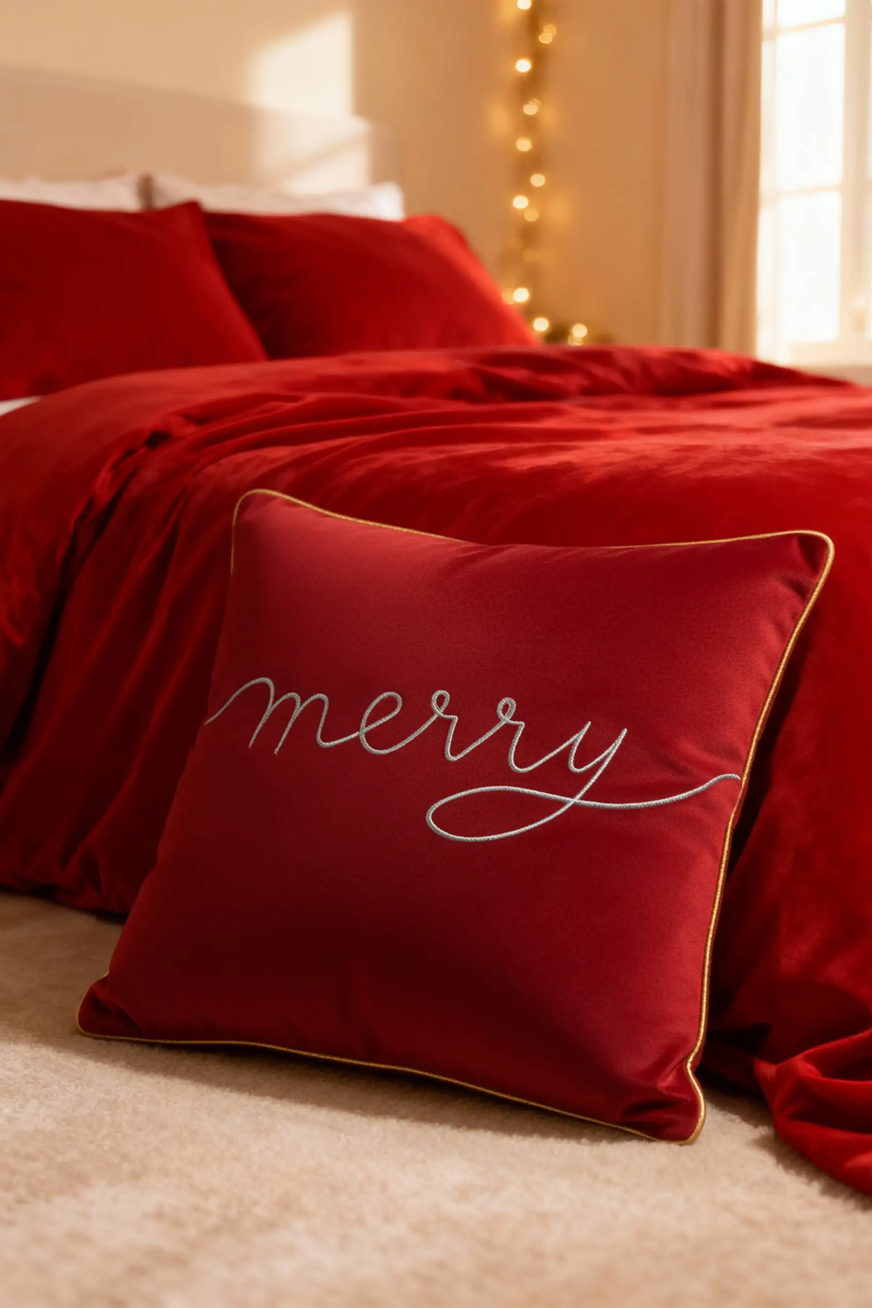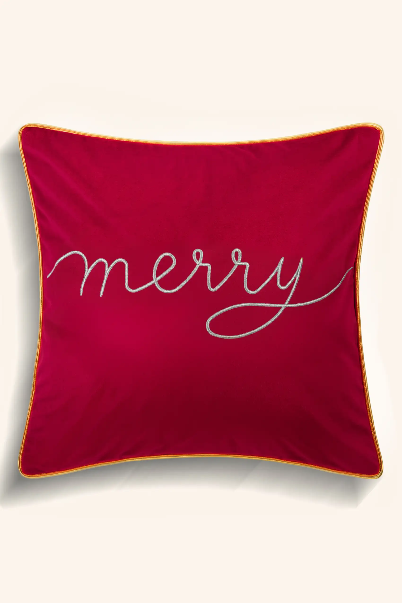 Czerwona świąteczna poszewka dekoracyjna MERRY z 100% welwet