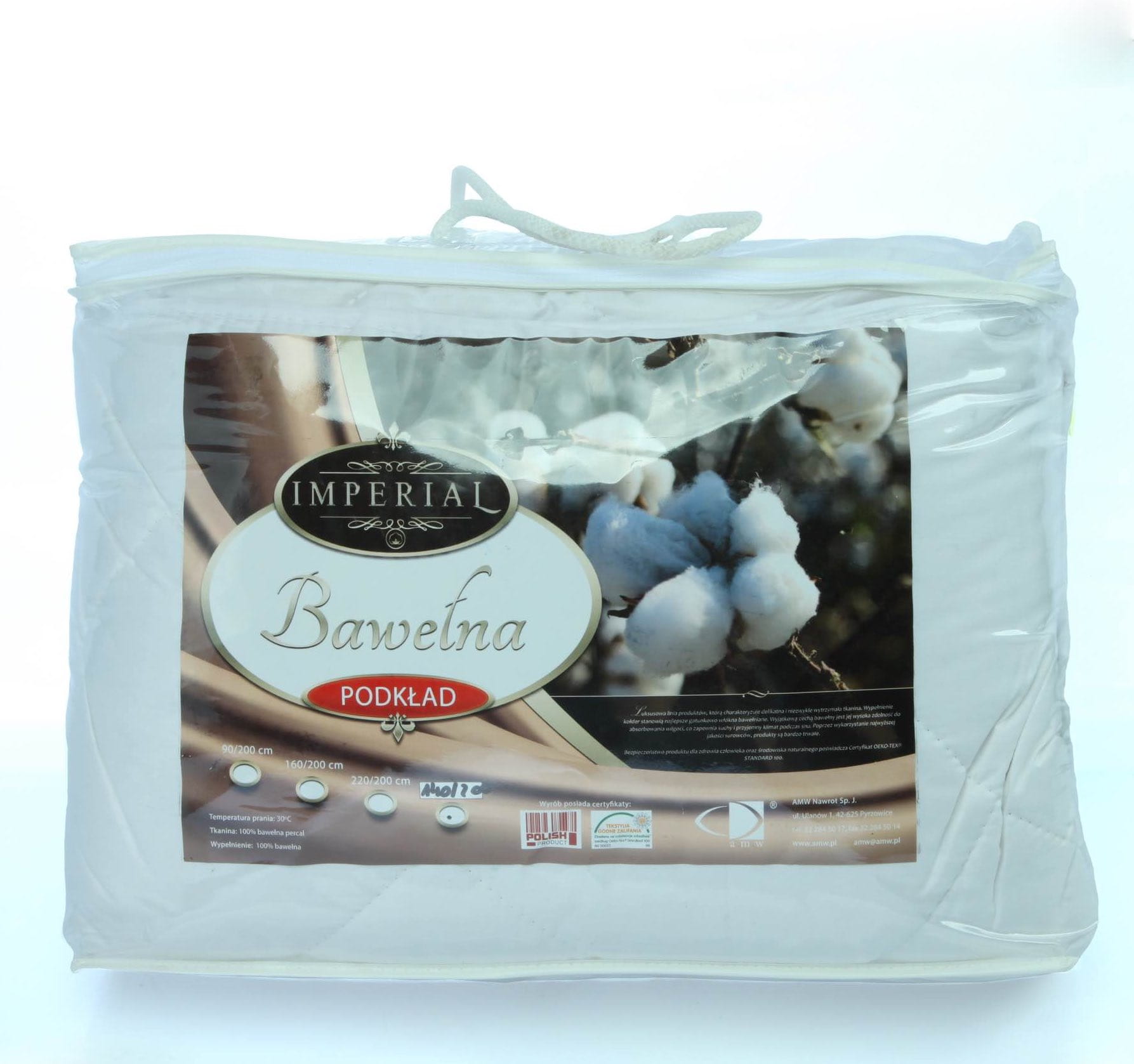Ekskluzywny ochraniacz na materac pochodzi z kolekcji Imperial, która została stworzona z myślą o małych dzieciach, osobach wymagających opieki lub osób chcących po prostu zabezpieczyć swój materac przed zabrudzeniem. Wykonany został z materiału składającego się w 100% z bawełny perkal, dzięki czemu skóra nadmiernie się nie poci, a tkanina jest wyjątkowa wytrzymała. Wypełnienie podkładu stanowią włókna bawełniane, które są lekkie, miękkie i sprężyste. Na ochraniaczu zastosowano pikowanie w romby zabezpieczające przed przesuwaniem się wsadu.