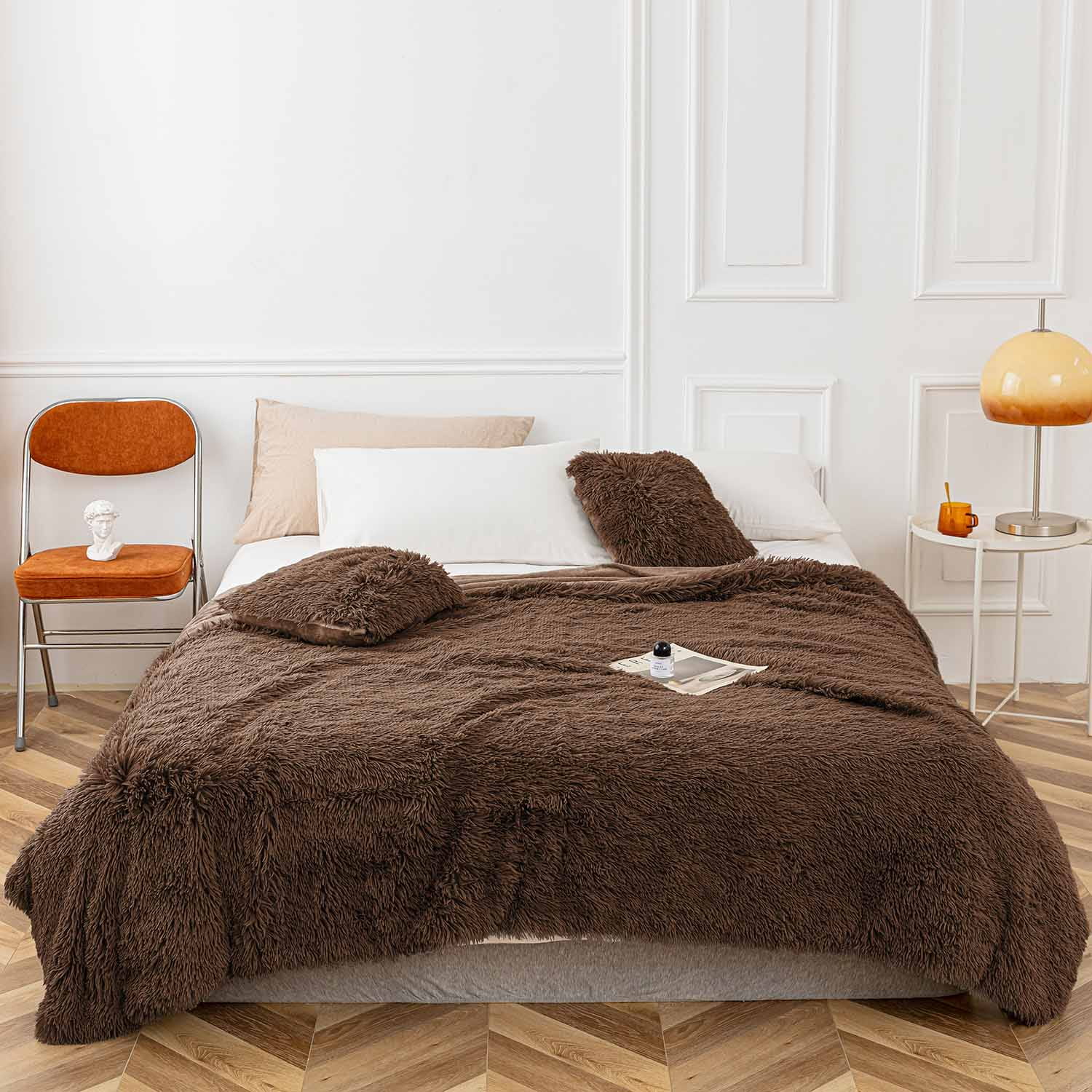 Koc włochacz w rozmiarze 200x220 cm wykonany został z materiału o gramaturze 460g/m2. Wierzchnia, futrzana warstwa składa się ze 100% poliestru, natomiast dolna to mikrofibra czyli 100% poliester. Pled w dotyku jest niesamowicie miękki i przyjemny w dotyku, dzięki czemu delikatnie otula ciało podczas chłodniejszych dni. Może być również wykorzystywany jako narzuta na łóżko lub kanapę.