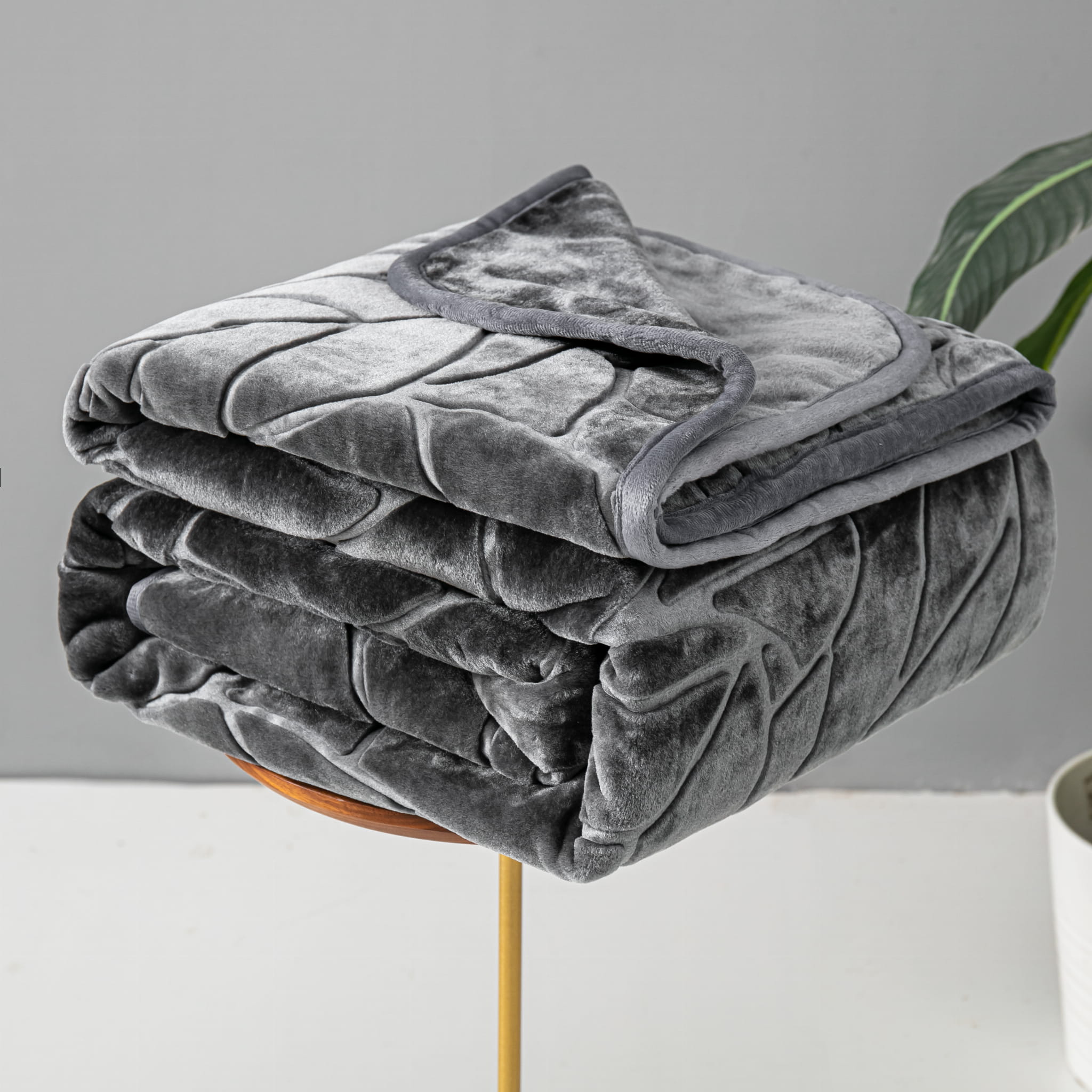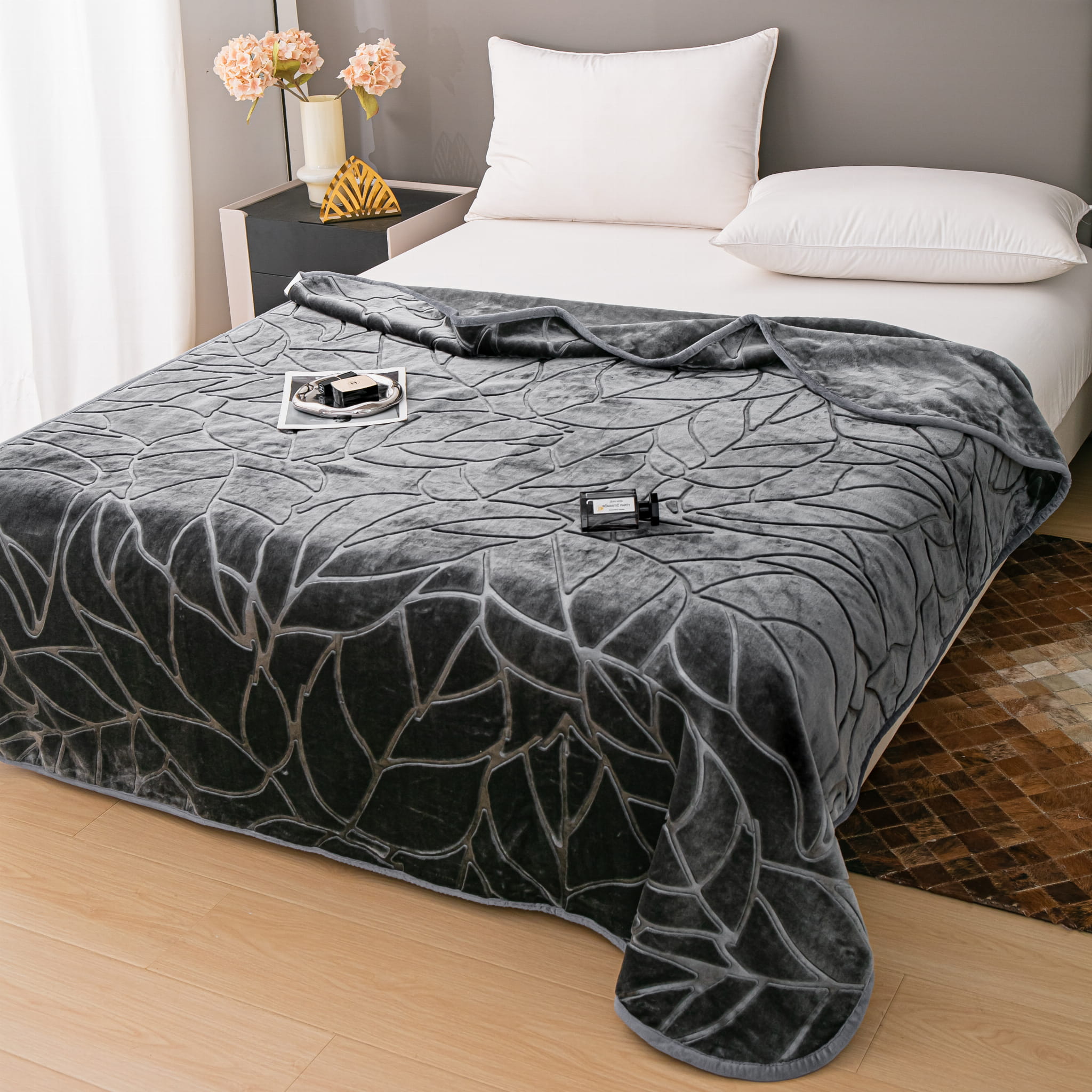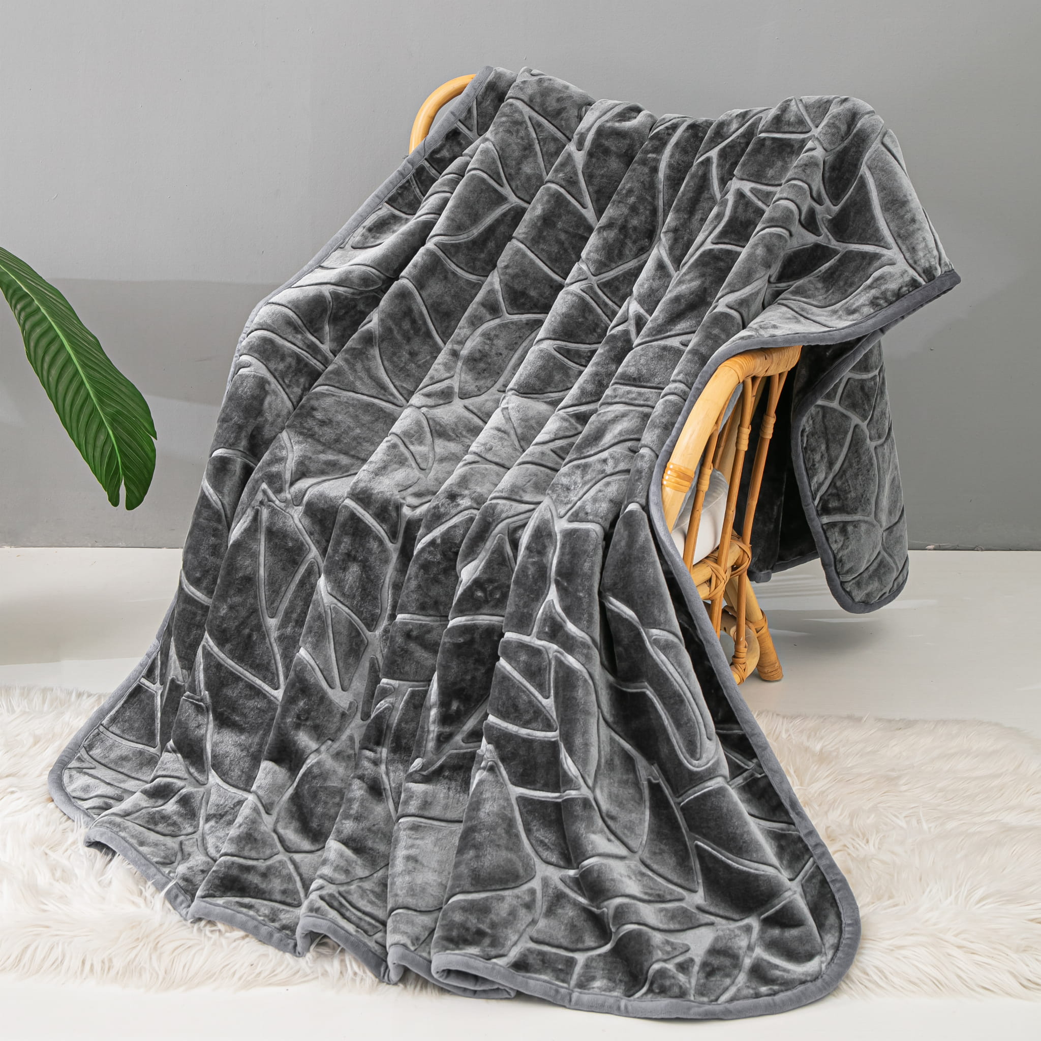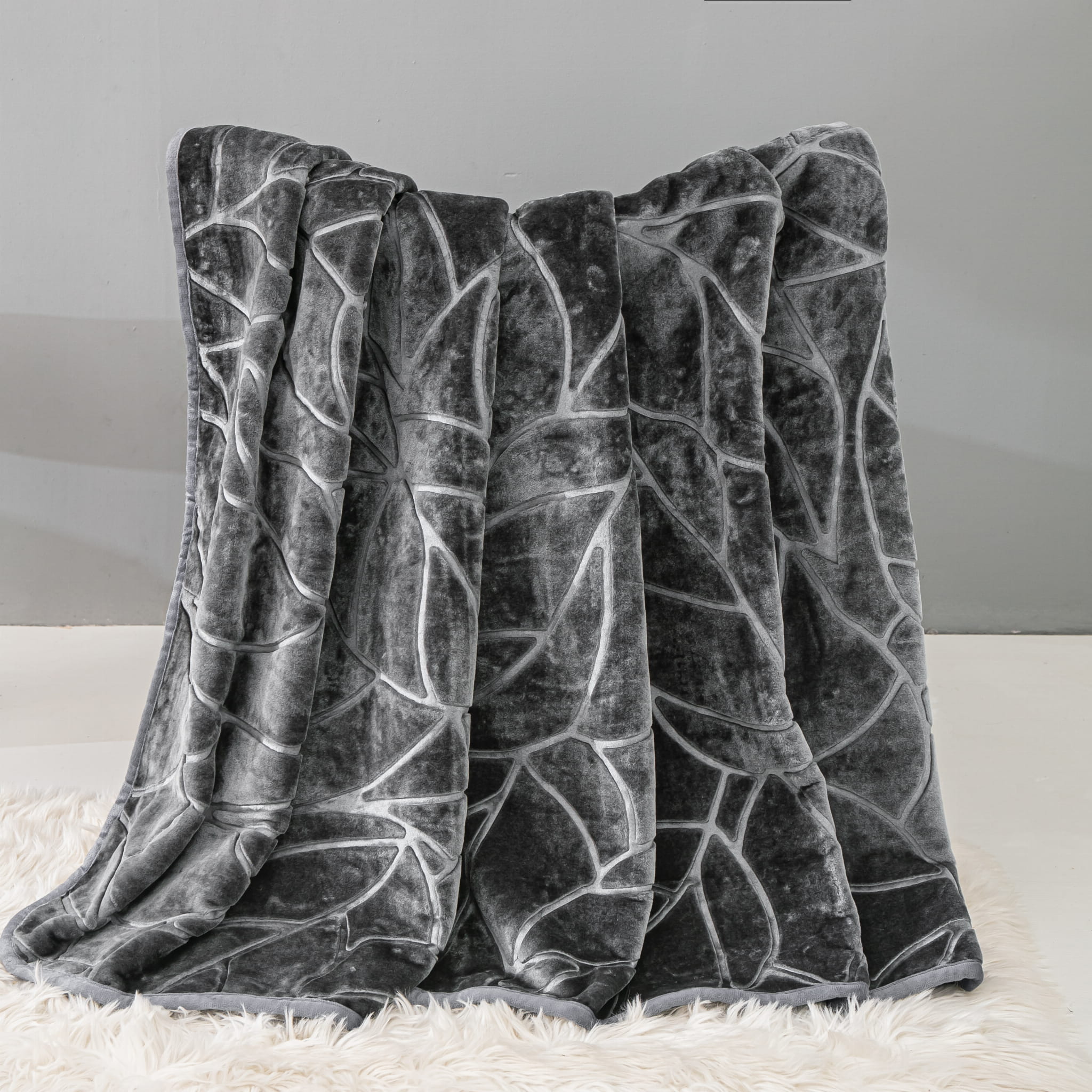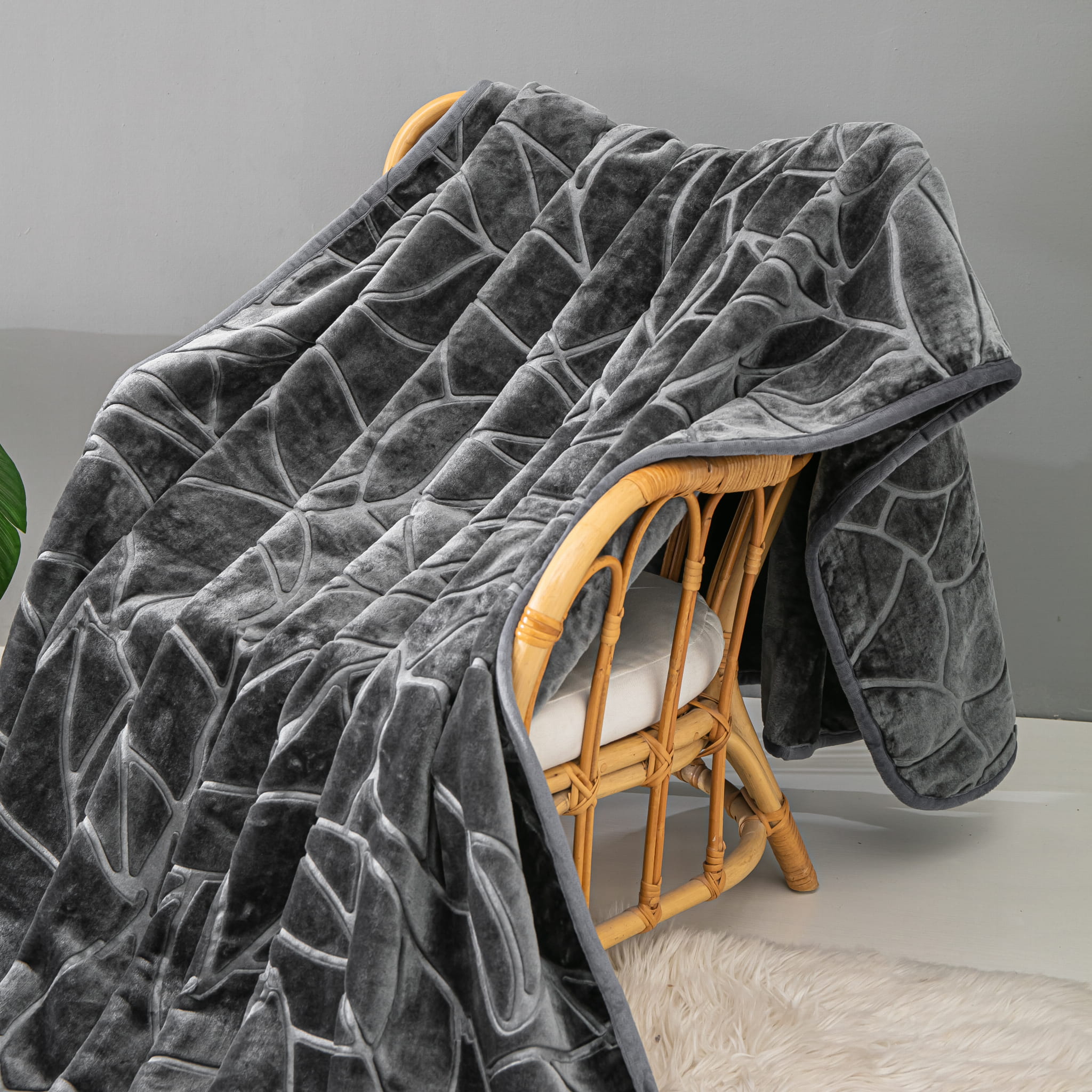 Grafitowy Akrylowy Koc Liv 200x220 z Tłoczeniem w Liście – Miękkość, Styl i Funkcjonalność w Jednym