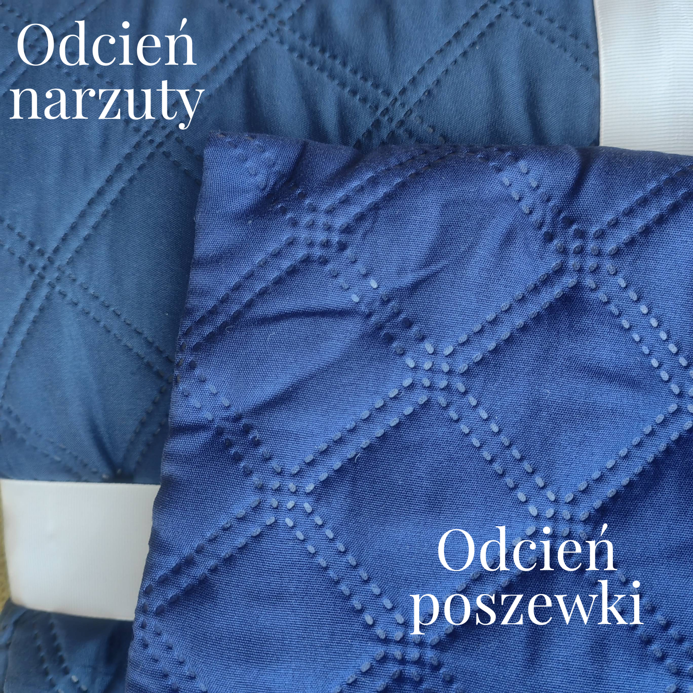 Ze względu na różnice w dostawach tkanin, odcień narzuty i poszewek w kolorze granatowym może się nieznacznie różnić. Jest to naturalny efekt procesu produkcyjnego i nie stanowi wady produktu ani podstawy do reklamacji.