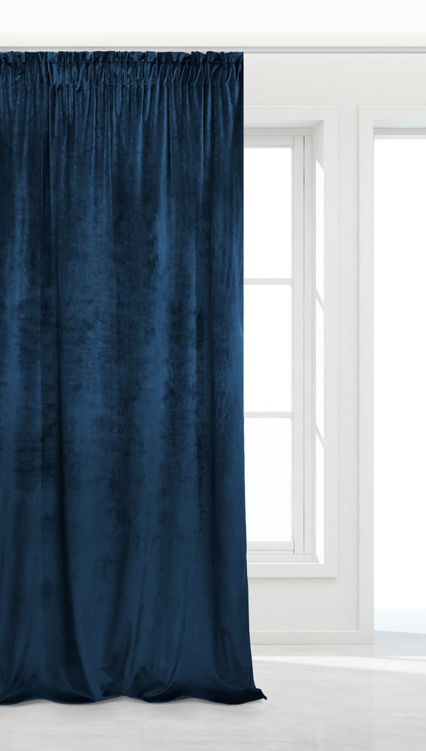 Granatowa Zasłona Welurowa Na Taśmie 140x270 Velvet Soft