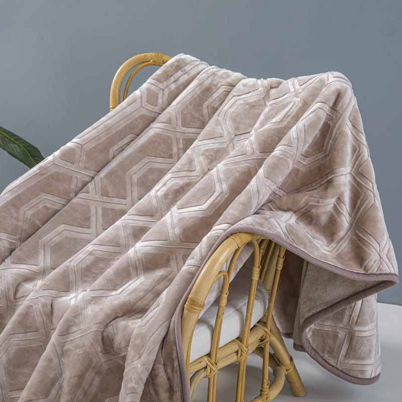 Taupe Akrylowy Koc Vito 200x220 z Tłoczeniem Geometrycznym – Miękkość, Styl i Funkcjonalność w Jednym
