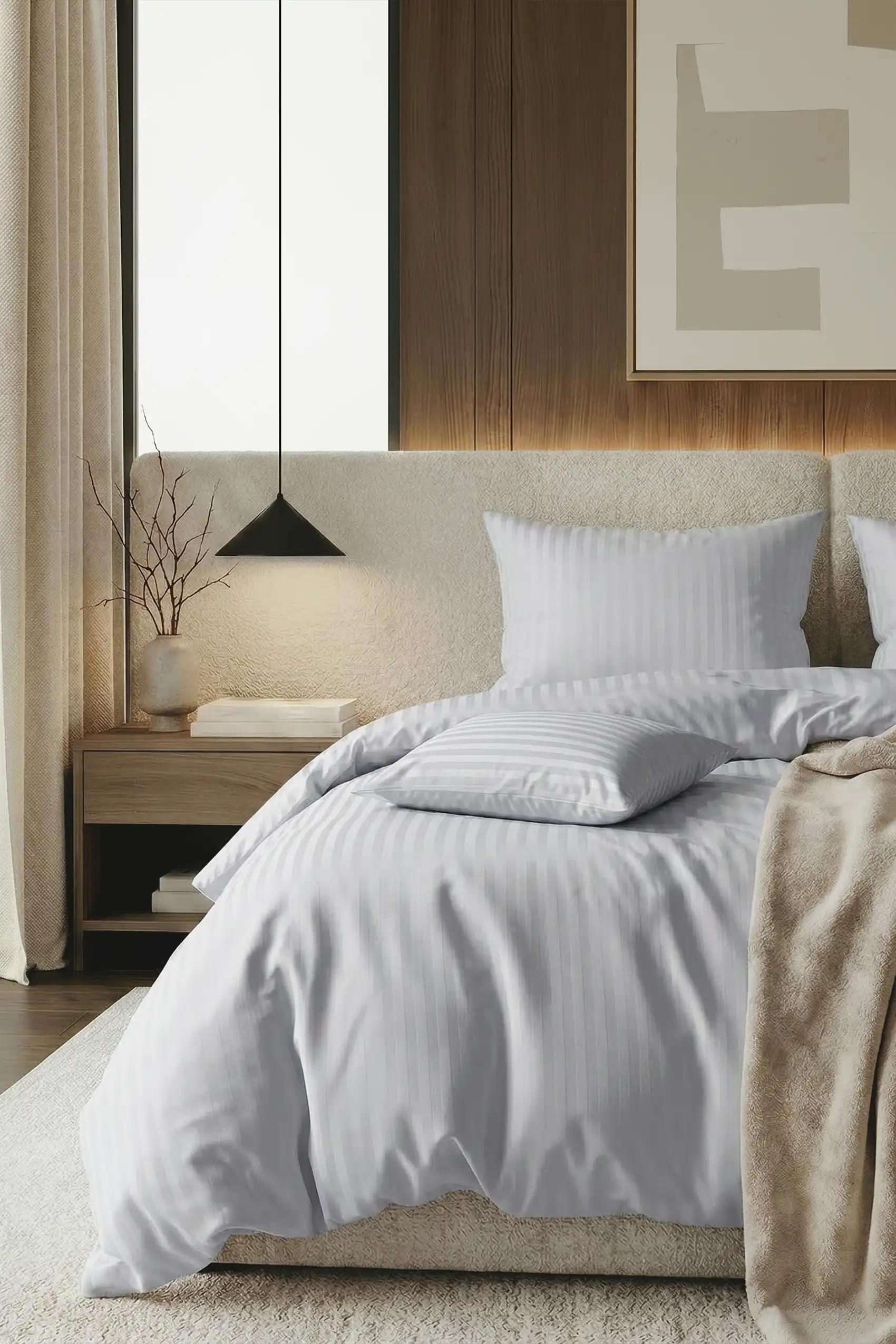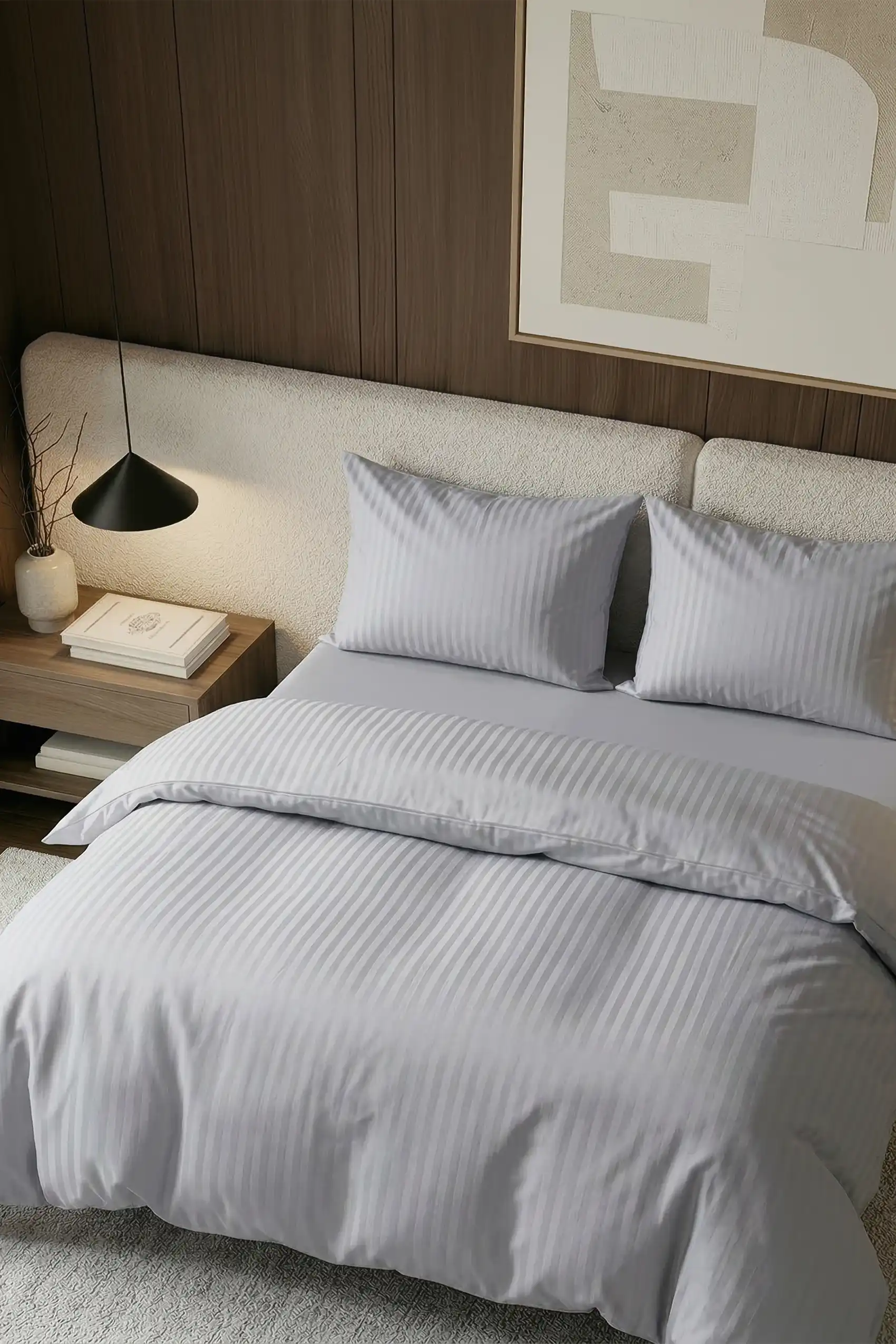 Jasno Szara Pościel z Adamaszku Hotelowego 140x200cm + 1 poszewka 70x80cm