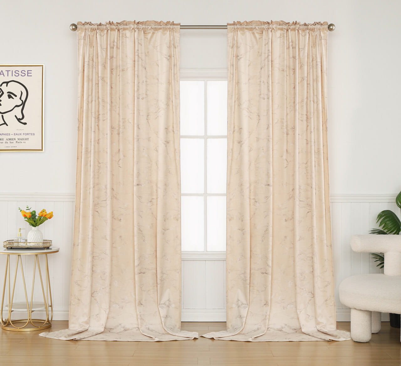 Jasny Beż Zasłona Z Marmurkowym Wzorem 140x270