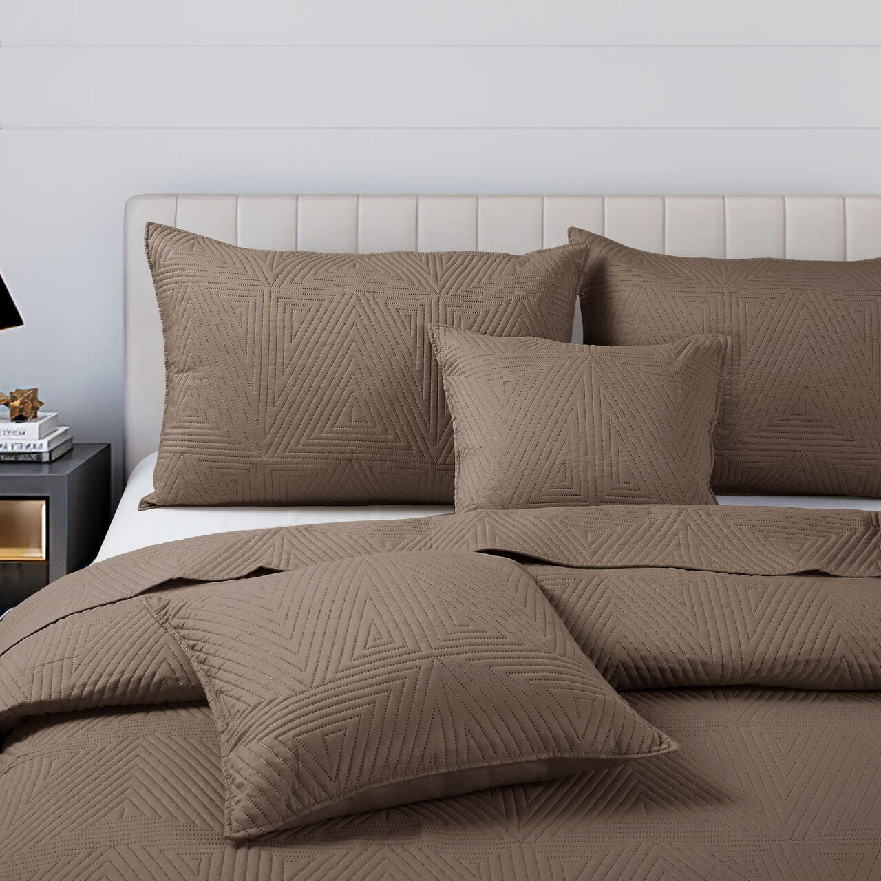 Pikowana Narzuta na Łóżko z Mikrofibry 240x220 TRIO Jasny Brąz