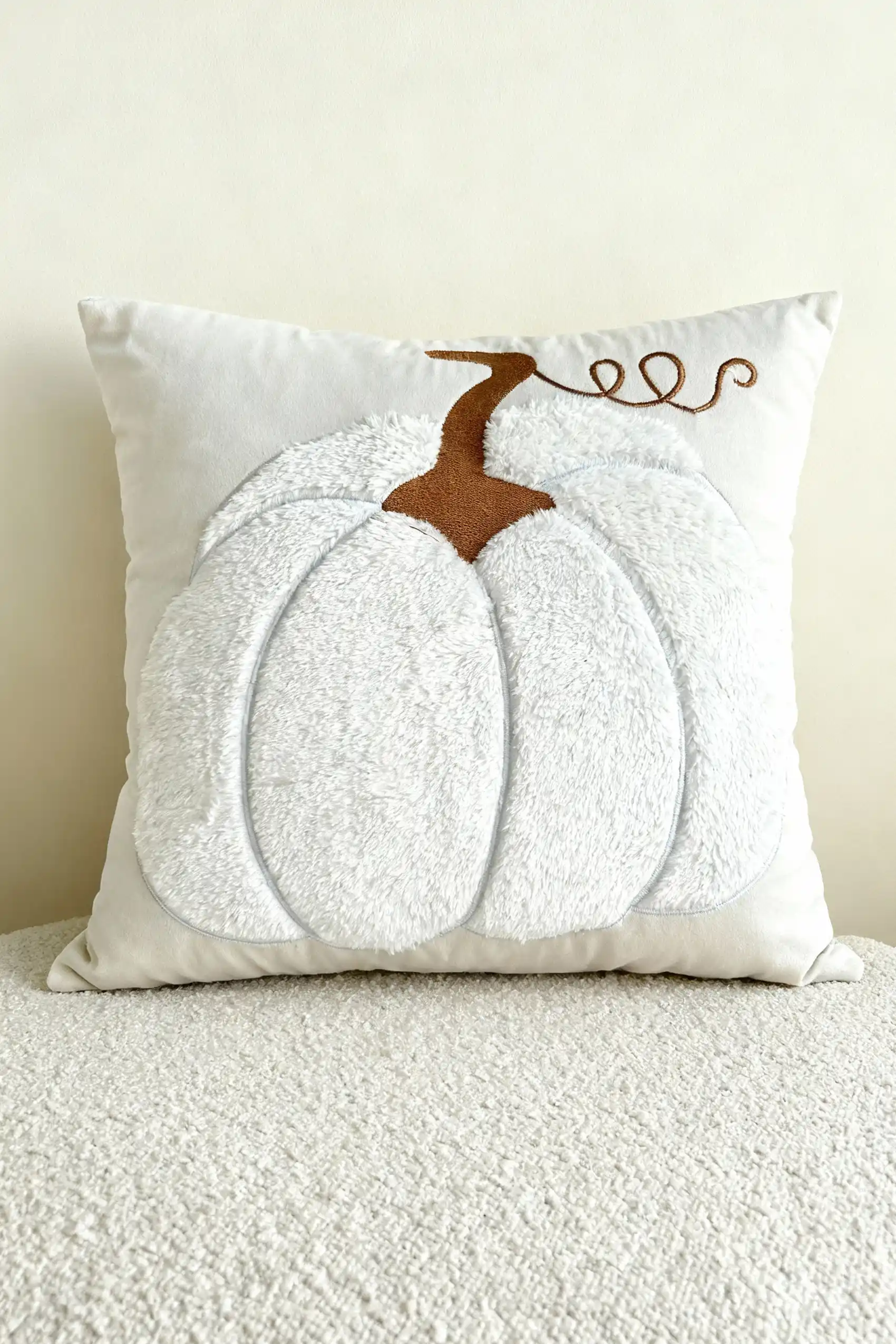 Każdy detal tej poszewki został zaprojektowany, by wprowadzić do wnętrza jesienny nastrój. Delikatny odcień kremu współgra z naturalnym brązem haftu, tworząc harmonijną kompozycję. Motyw białej dyni symbolizuje spokój, ciepło i domowe zacisze. Tkanina z mikrofibry jest przyjemna w dotyku, a przy tym trwała i łatwa w pielęgnacji. Poszewka doskonale wygląda na fotelu, sofie czy łóżku, w towarzystwie świec i koca. To niewielki dodatek, który potrafi odmienić całe wnętrze.