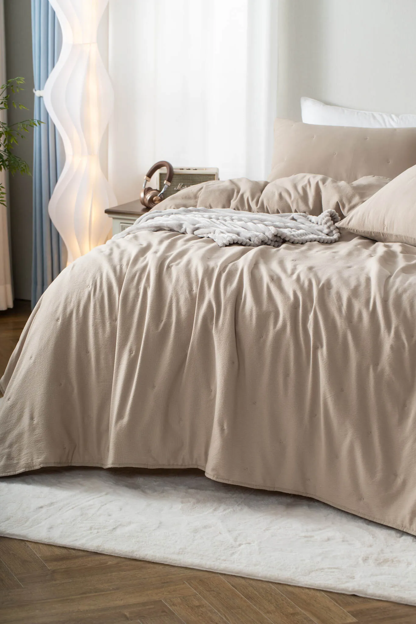 Mocca narzuta z haftem kropek z mikrofibry o delikatnie wypukłej, ziarnistej strukturze Dotta