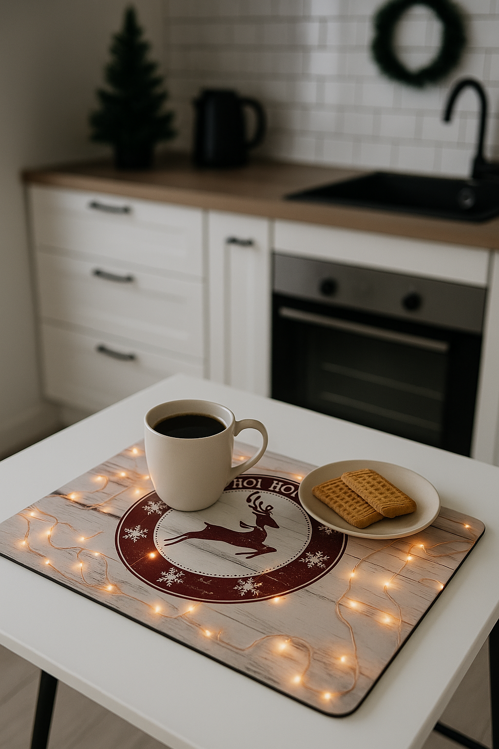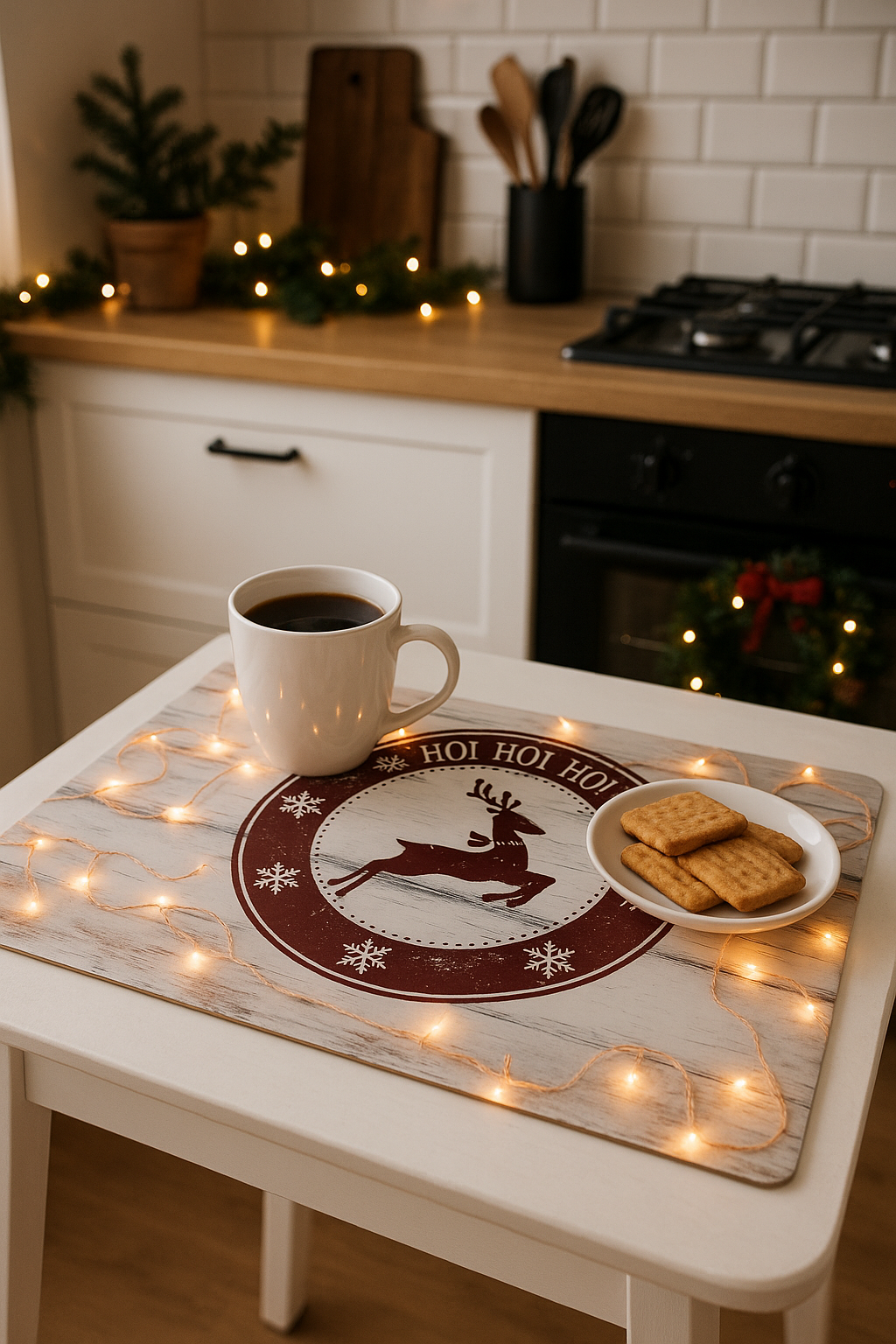 Podkładka na stół Santa w rozmiarze 28x43 cm wykonana została z wysokiej jakości tworzywa PVC. Jest bardzo estetyczna, gładka i elastyczna.