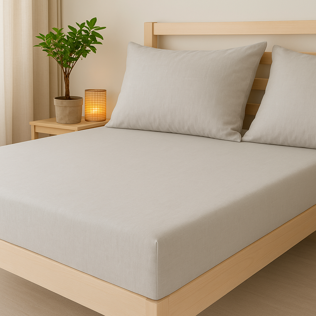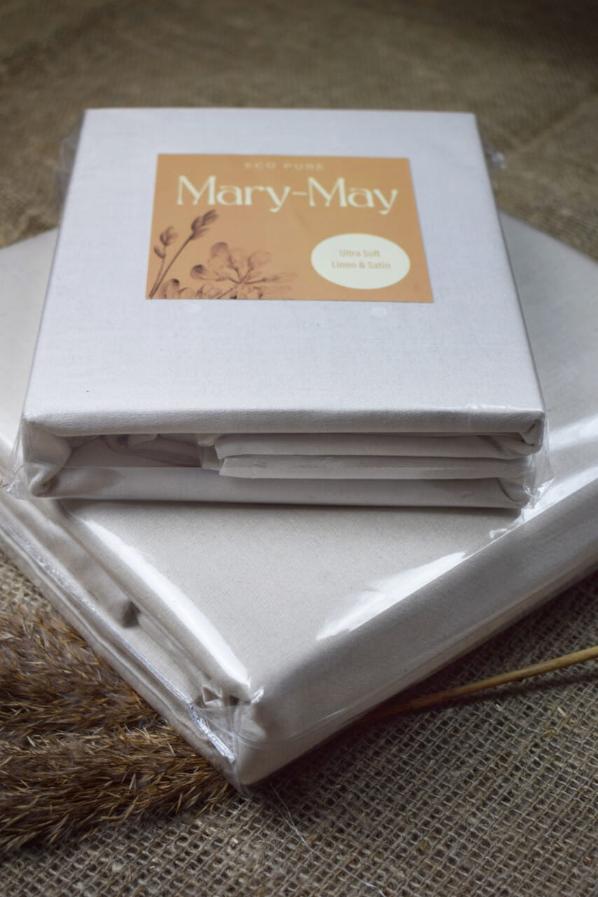 Beżowe Prześcieradło Lniane z Satyną Bawełnianą Eco Pure bez Gumki 160x200 cm - Komfort Snu w Naturalnym Wydaniu