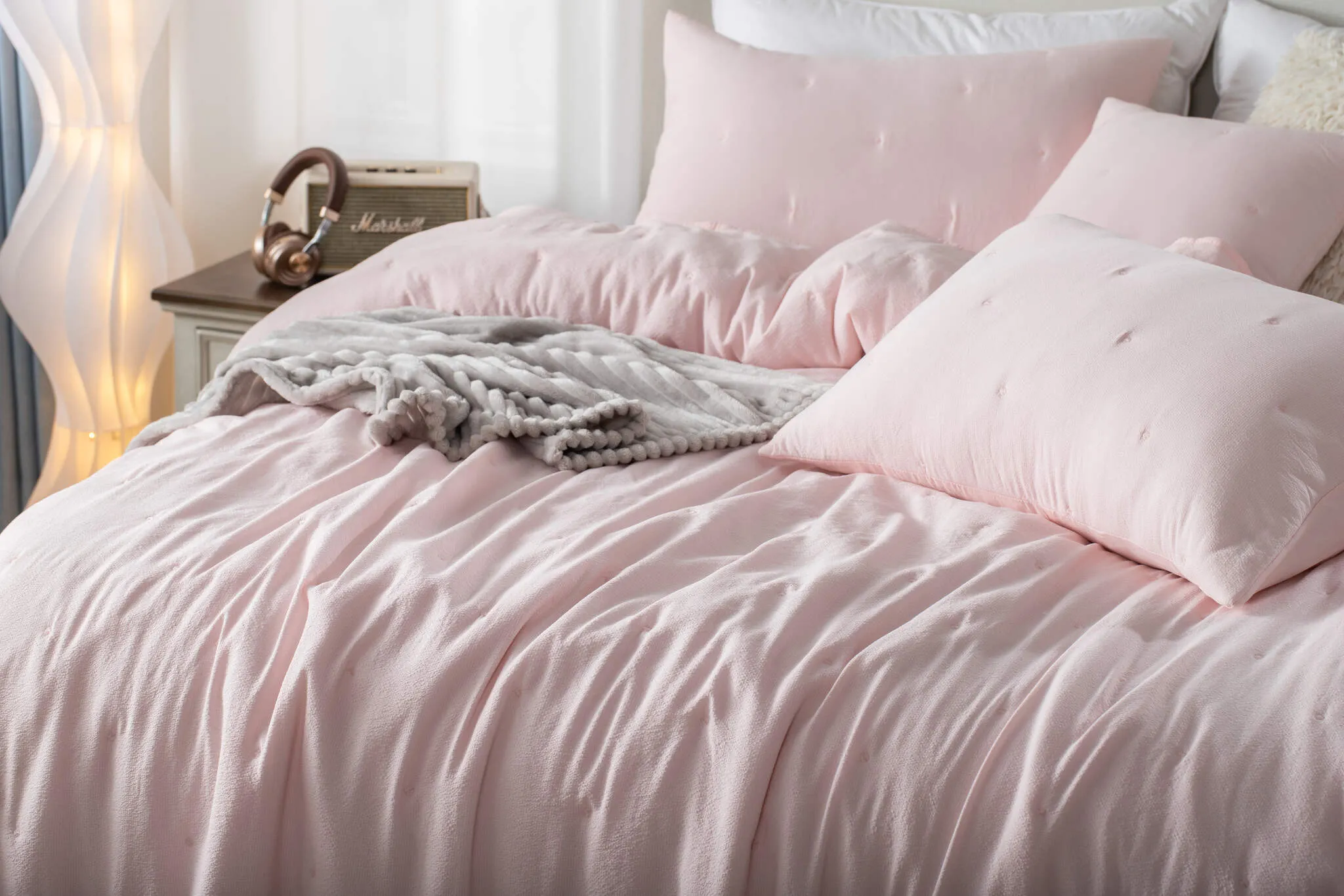 Z jakimi kolorami najlepiej komponuje się narzuta w kolorze pudrowym?