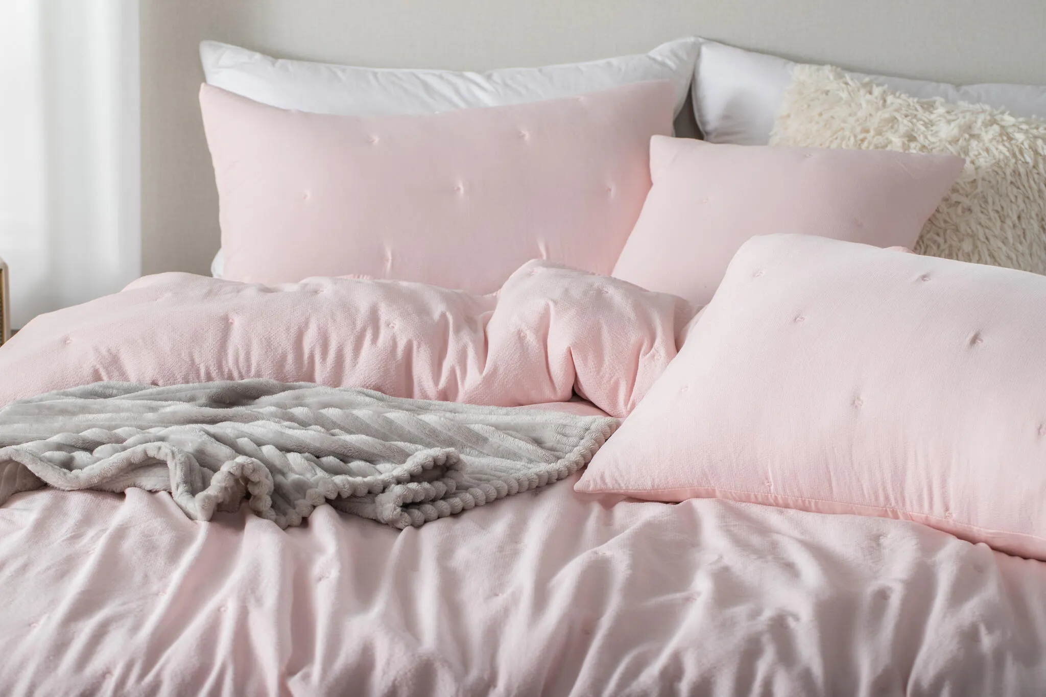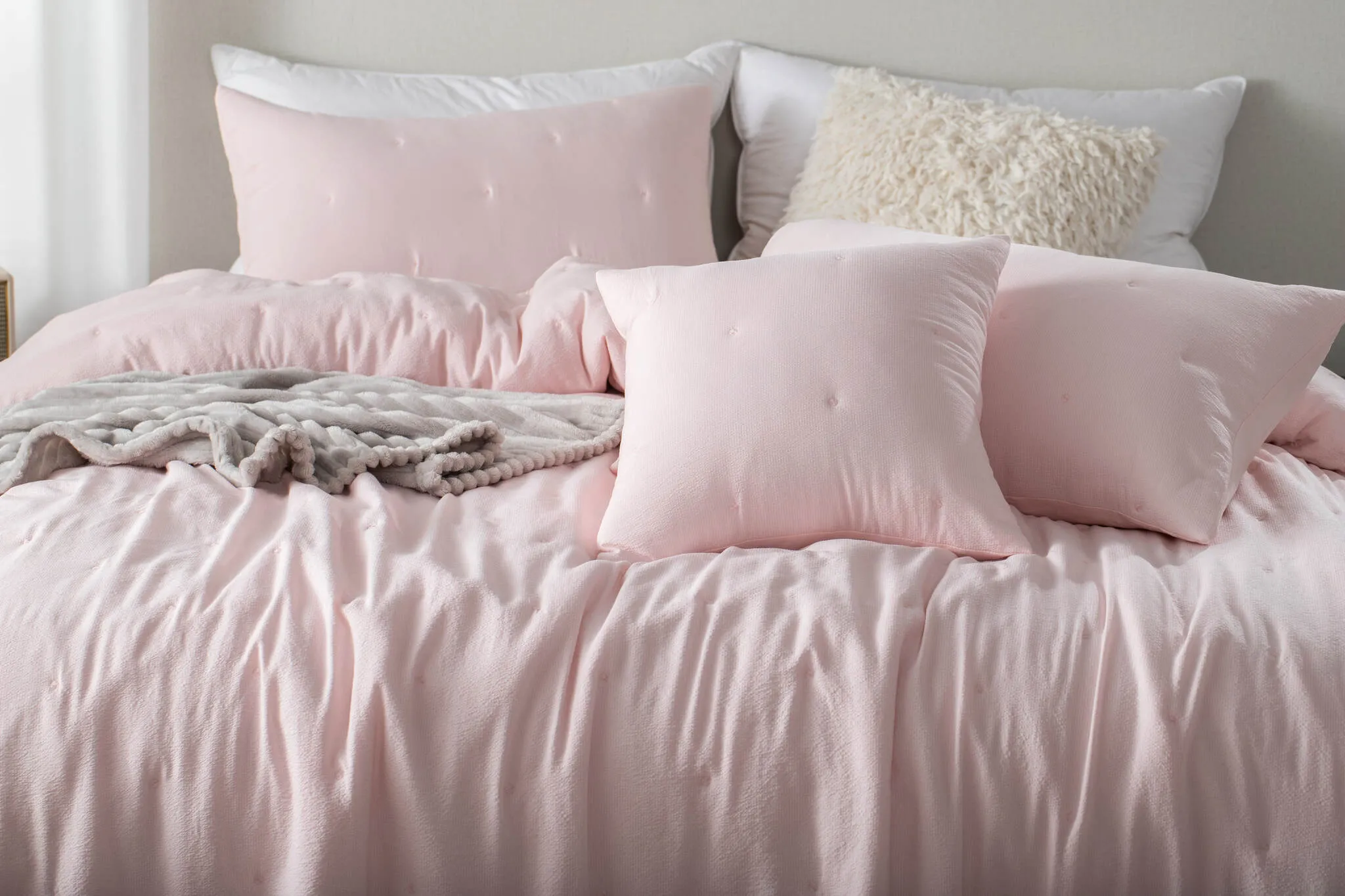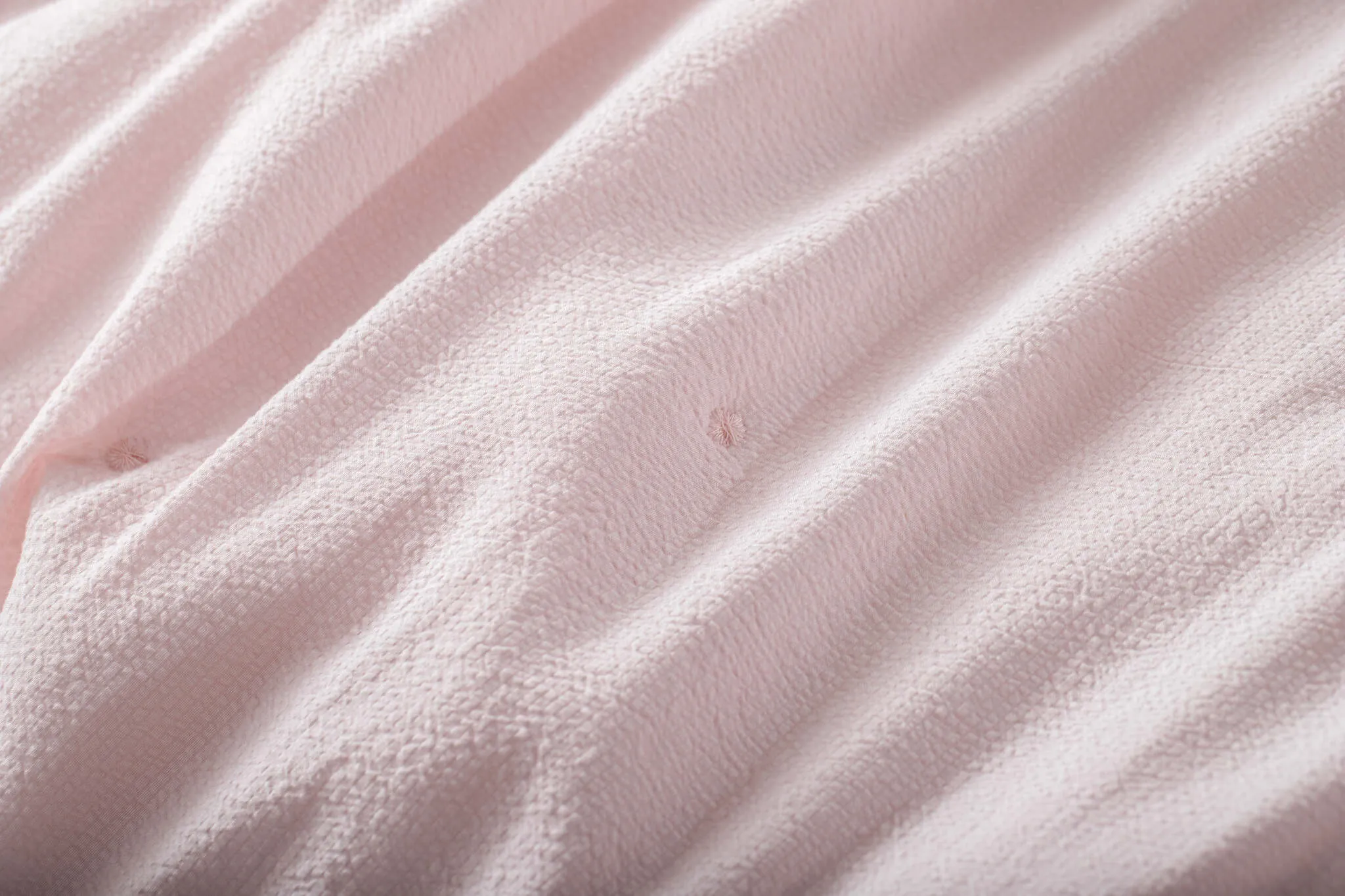 Pudrowa narzuta z haftem kropek z mikrofibry o delikatnie wypukłej, ziarnistej strukturze Dotta