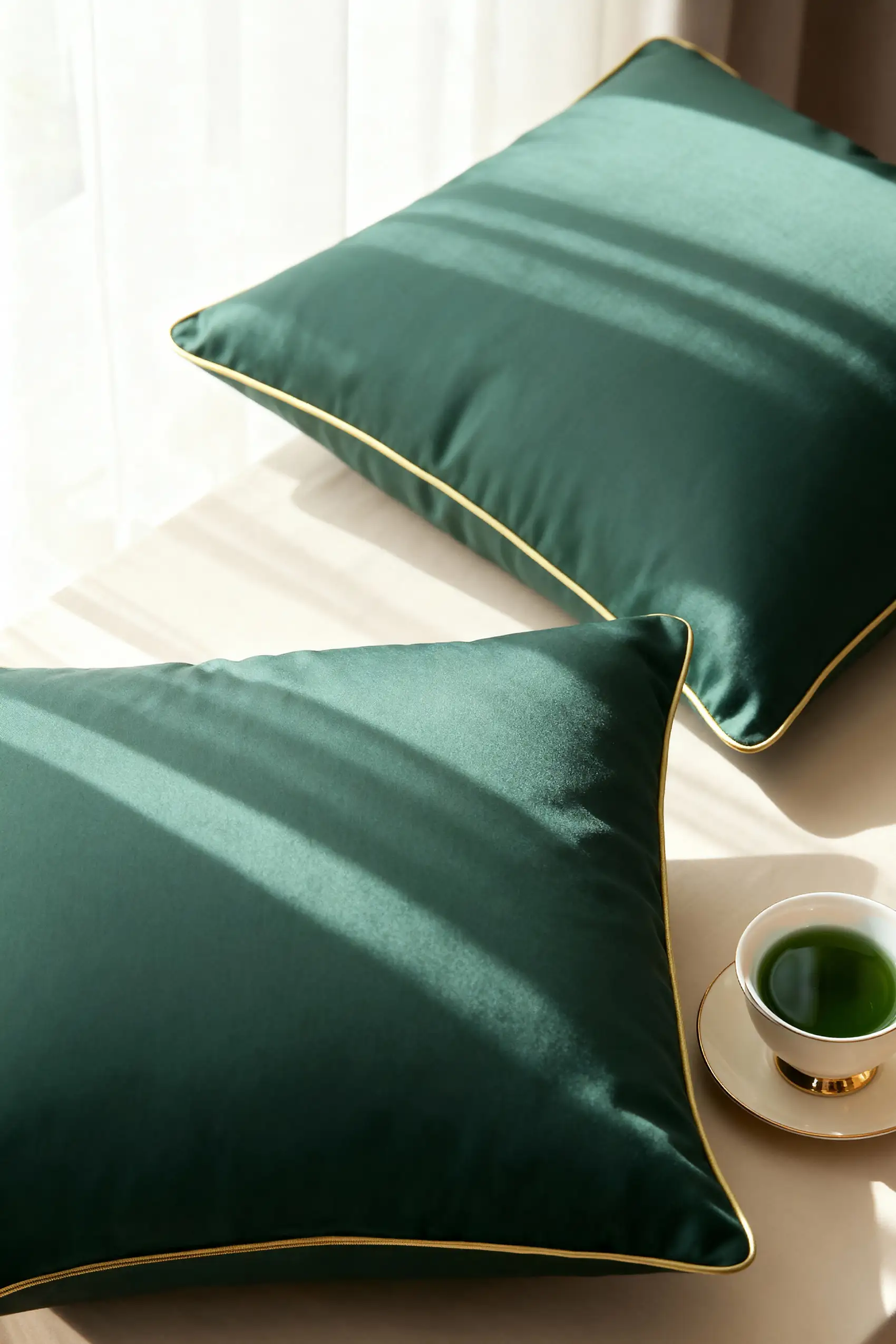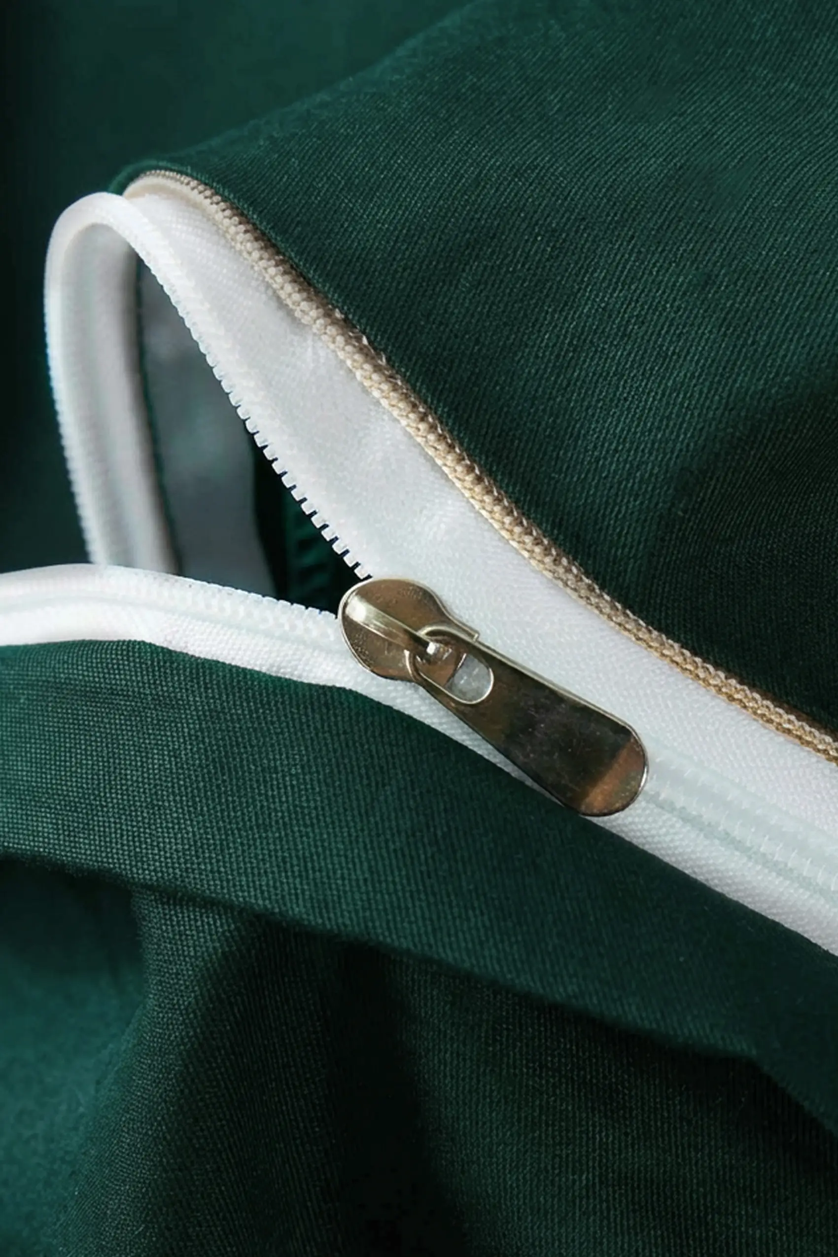 Satynowa Poszewka Queen Premium 50x70 Butelkowa Zieleń ze Złotą Lamówką