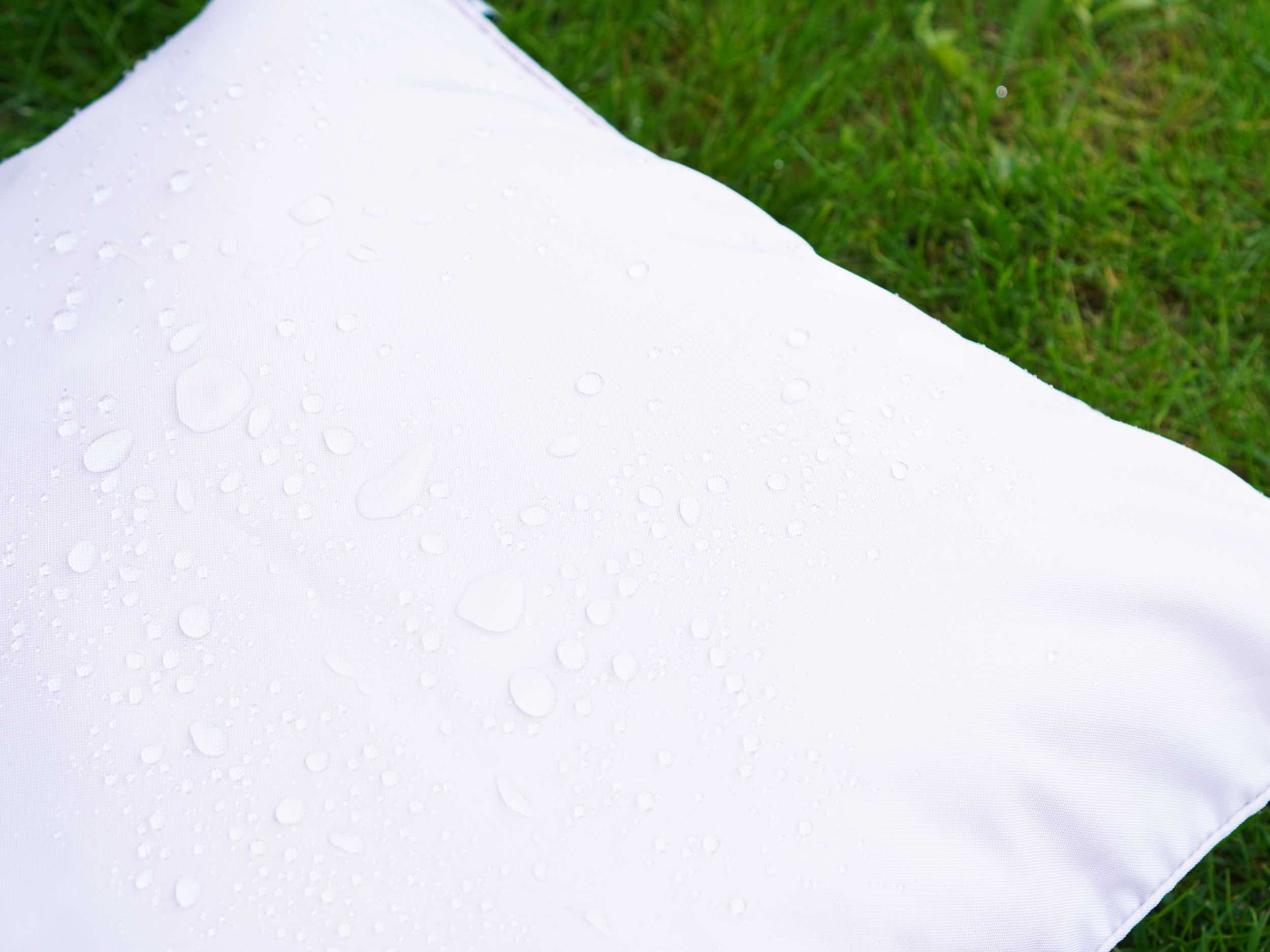 ✔ Materiał: 100% poliester z powłoką wodoodporną - trwała tkanina poliestrowa z dodatkową powłoką hydrofobową skutecznie chroni wnętrze poduszki przed wilgocią. Materiał charakteryzuje się wysoką odpornością na zużycie oraz łatwością w utrzymaniu czystości.