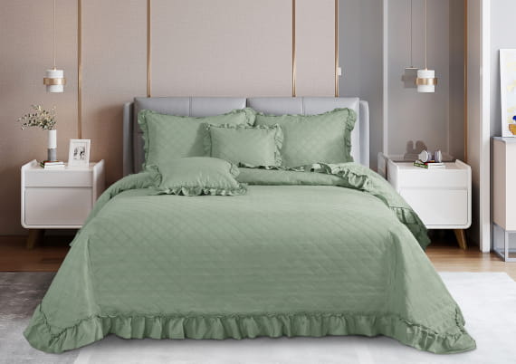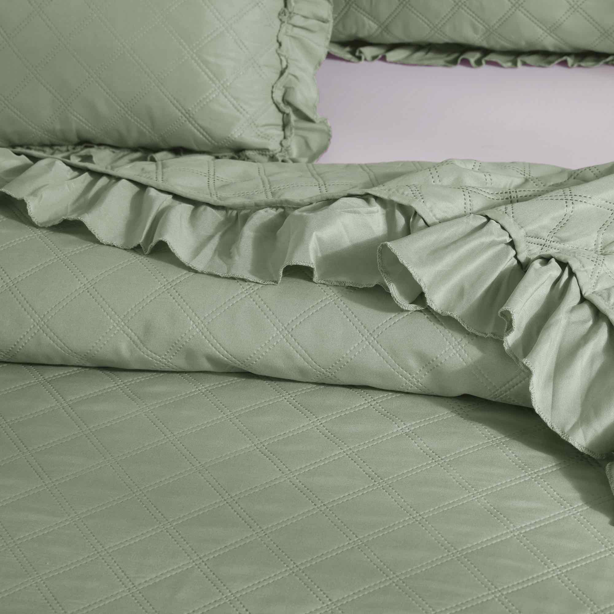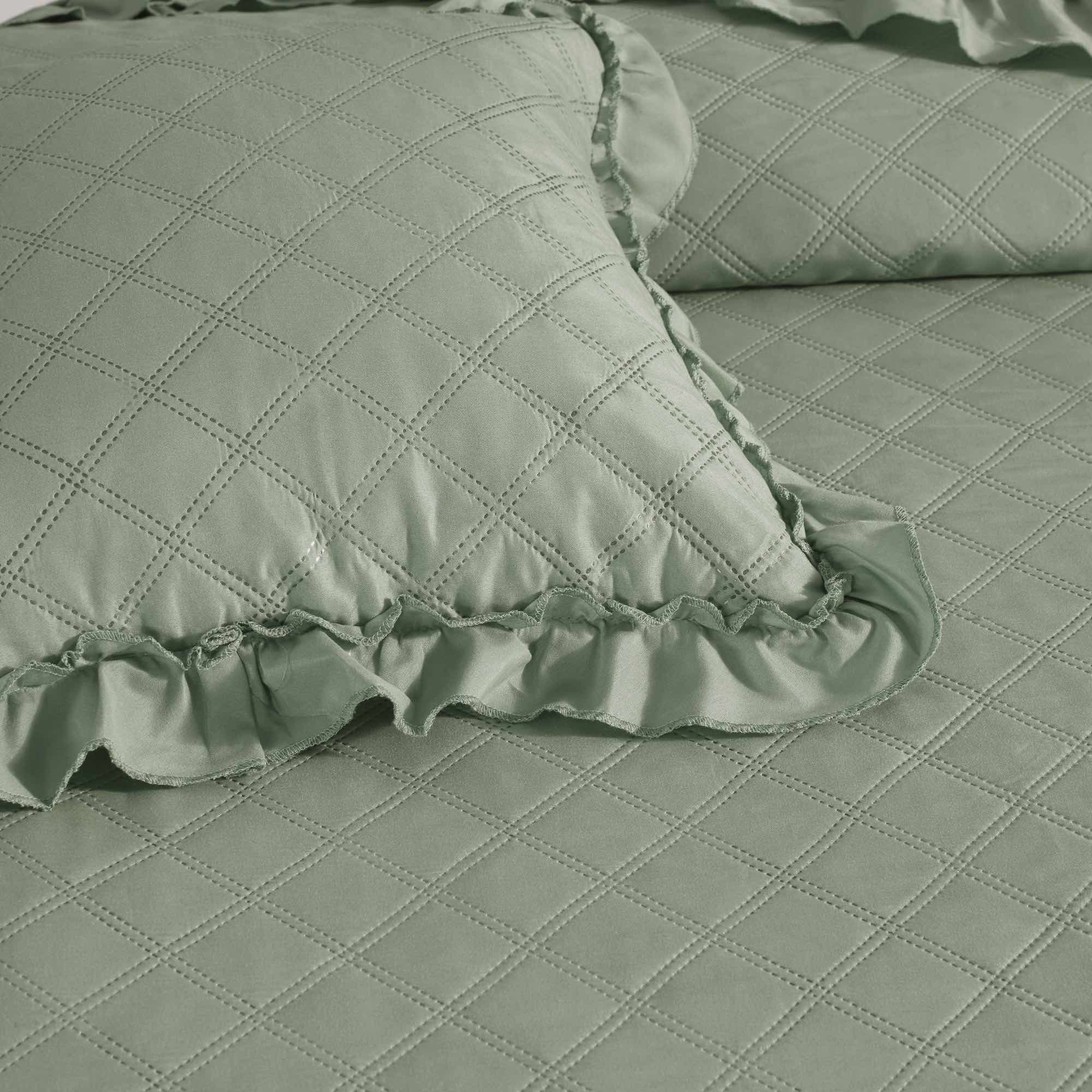 Szałwiowa Narzuta Pikowana Z Falbanką 240x220 RUFFY