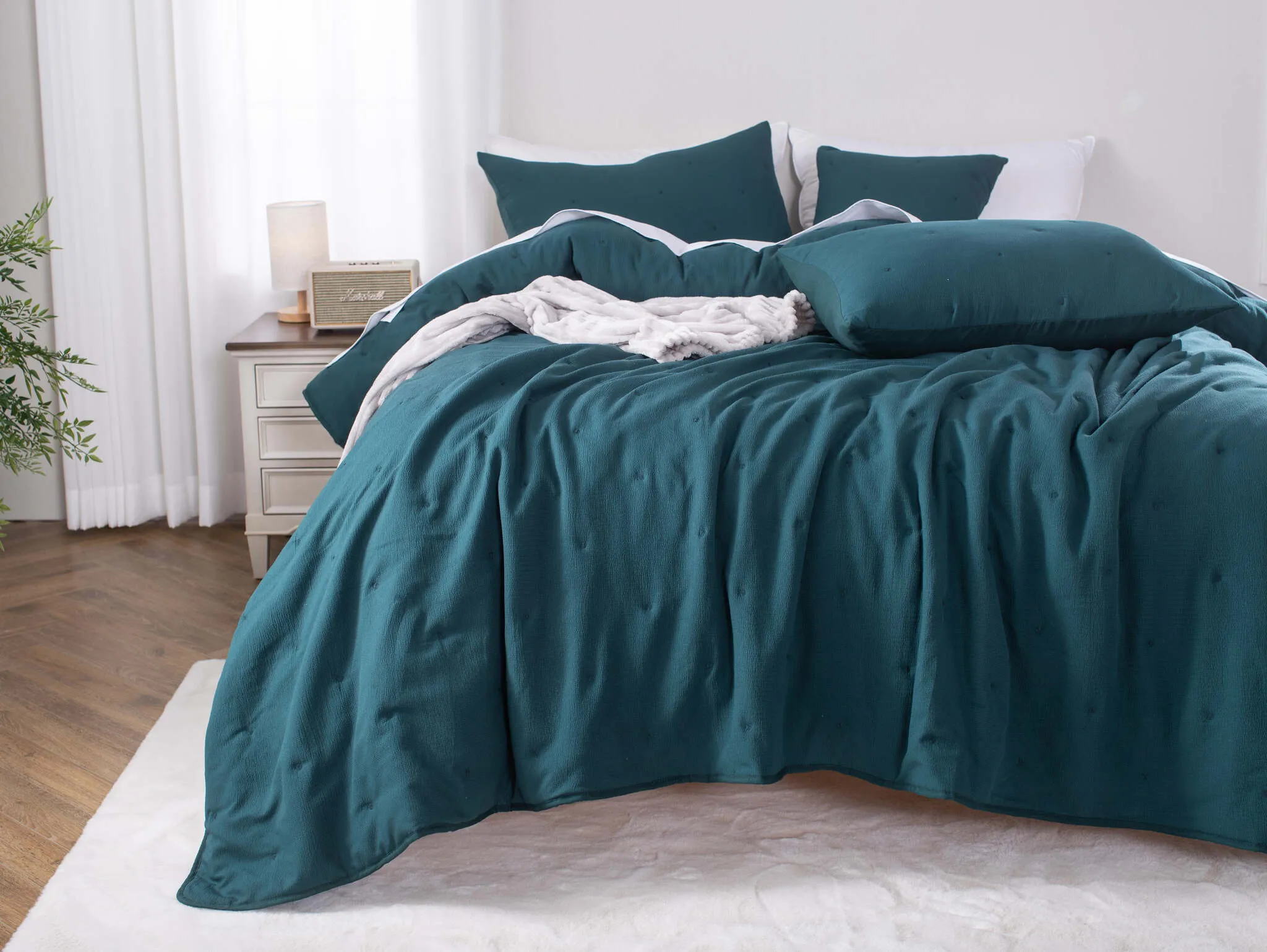 - Lekka i poręczna – łatwo ją złożyć, przechowywać i nakrywać łóżko.