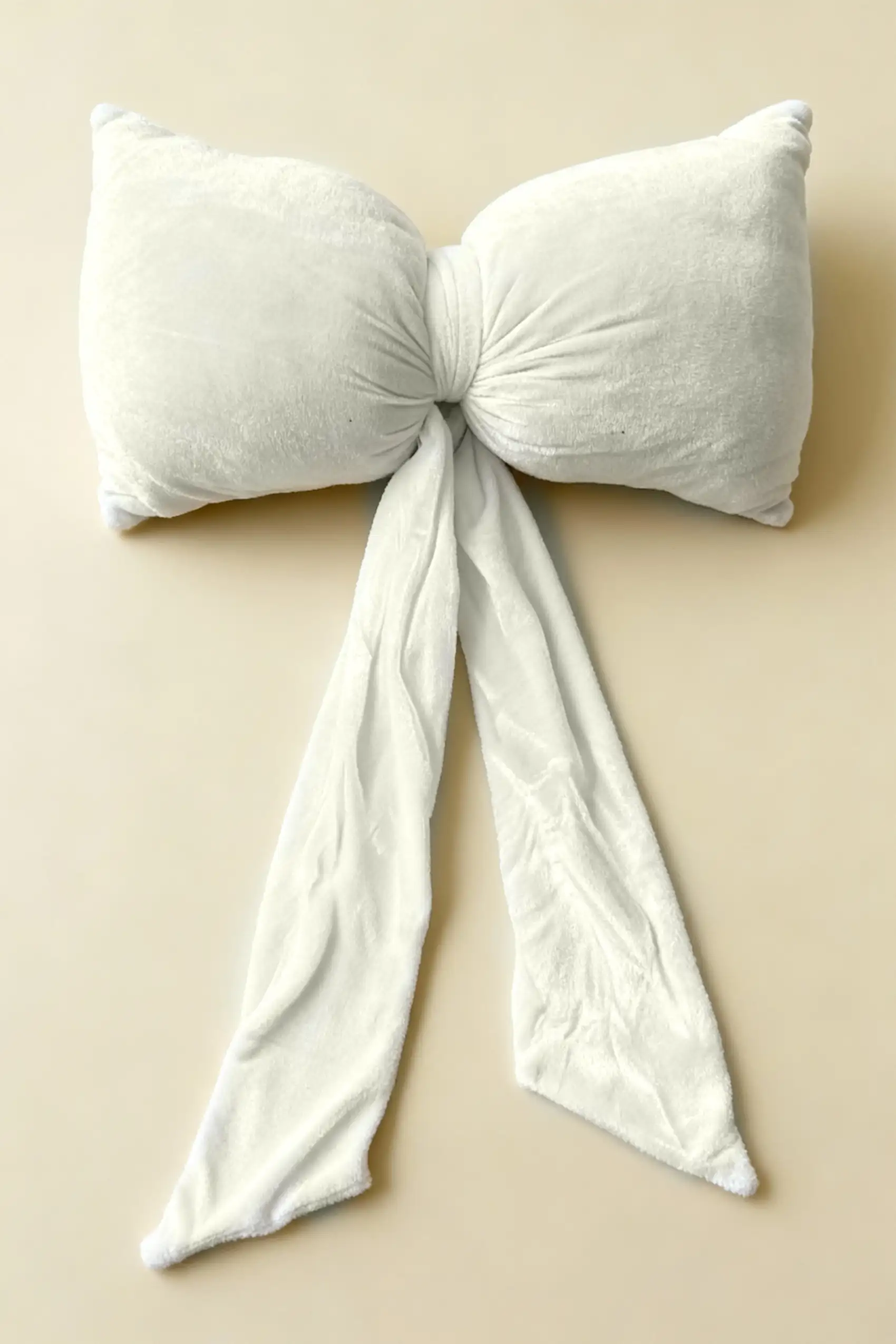 Welurowa poduszka świąteczna w kształcie kokardy 40x23 cm Duża Kremowa