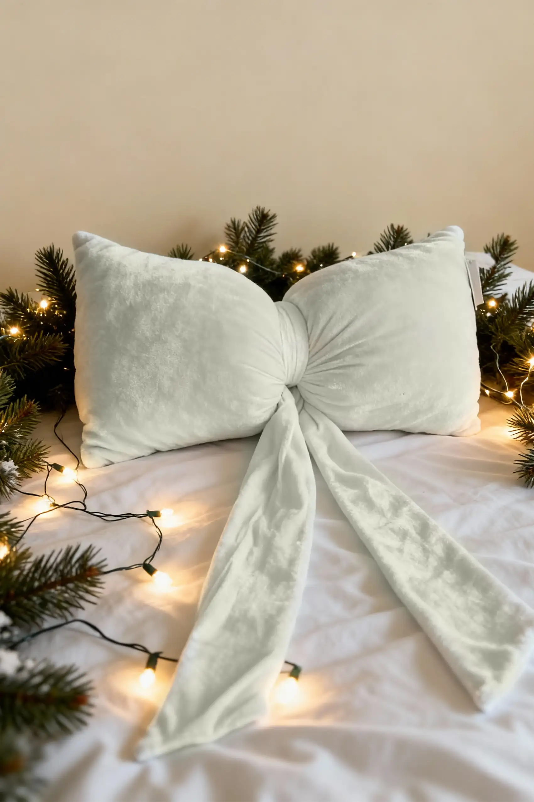 Miękka, welurowa poduszka w kształcie kokardy to błyskawiczny sposób na świąteczną metamorfozę sofy, fotela lub kącika dziecięcego. Subtelny połysk welwetu i rzeźbiarska forma „węzła” w centrum dodają aranżacji elegancji i przytulności. Kokarda pięknie „dopełnia” kompozycje z innymi tekstyliami.
