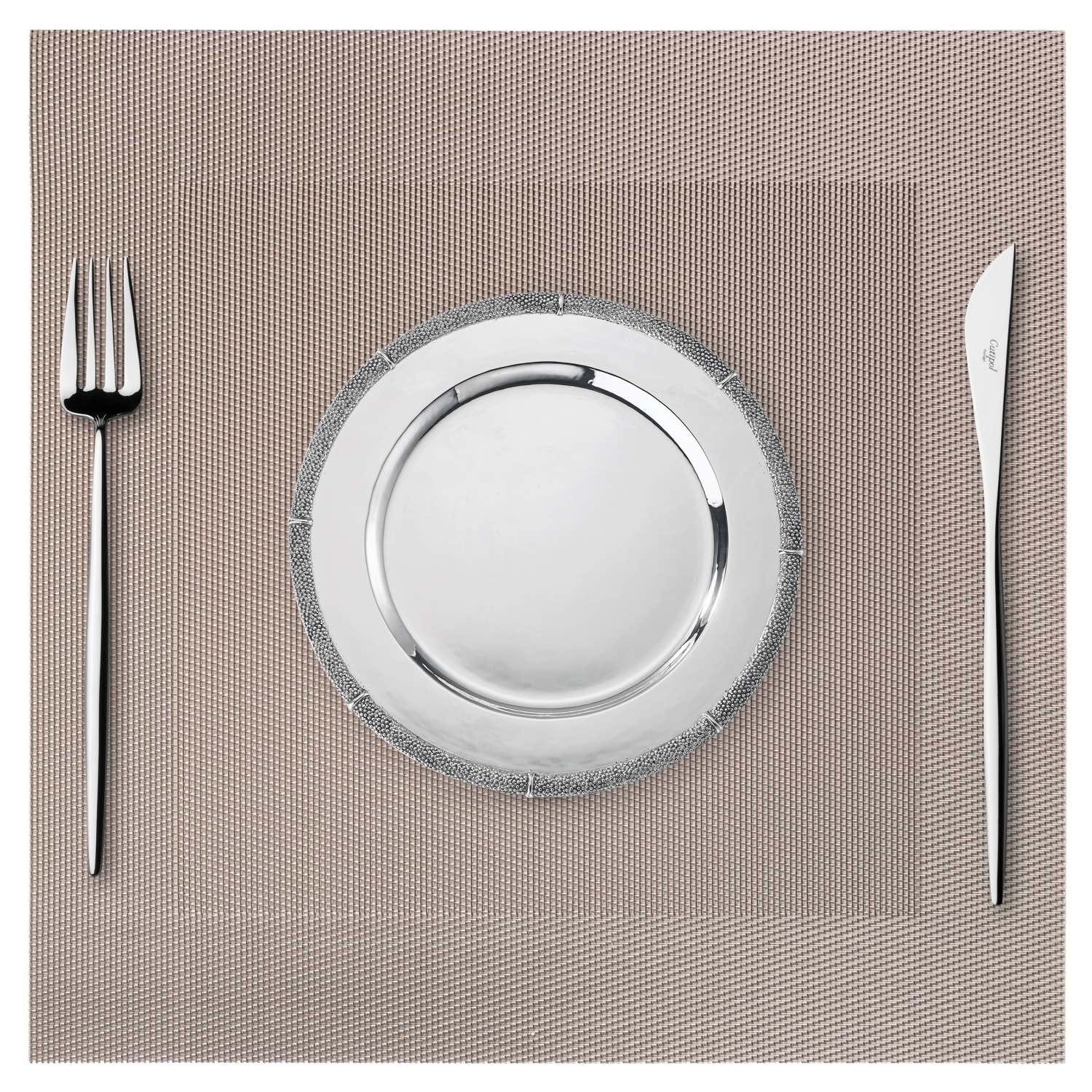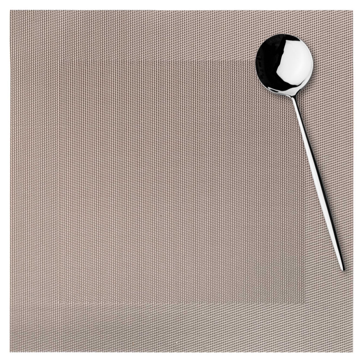 Pokładka na stół Latte w rozmiarze 10x10 cm wykonana została z wysokiej jakości plecionki PVC. Jest bardzo estetyczna, gładka i elastyczna w dotyku oraz posiada delikatny połysk, który subtelnie załamuje światło.